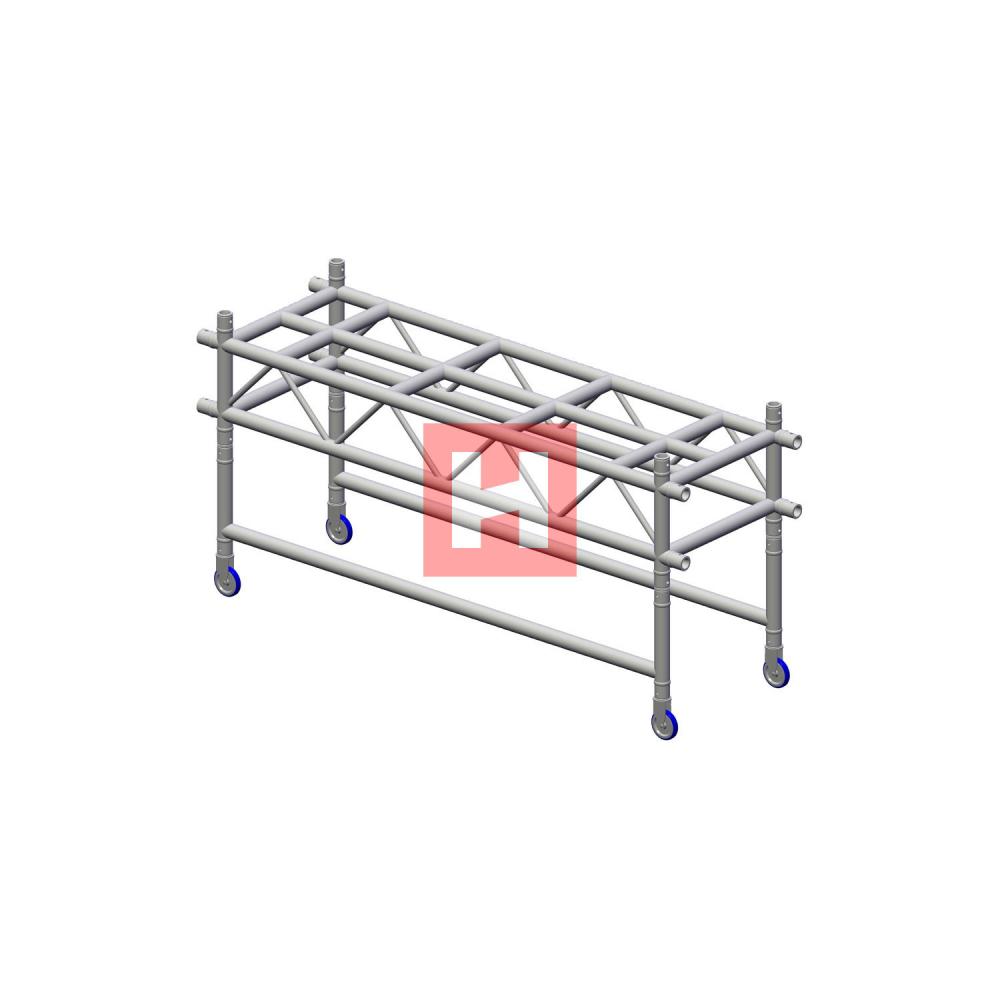 Technical data: Length: 2000 mm Tube: 48 x 3 mm Bracing: 20 x 2 mm Material: EN-AW 6082 T6 Total height incl. dolly: ca 975 mm Width: 600mm Eurocode 9 tested TÜV certified factory Powder coating available The 290 MLT from the HOFKON system is not only a truss, the 290 MLT is the transportation opportunity for high quality lighting equipment. The Equipment can simply put in the 290 MLT and therefore no cases are needed for transport. The fixture can be prepared before the show. That is why this thruss is timesaving as well as space-saving. |