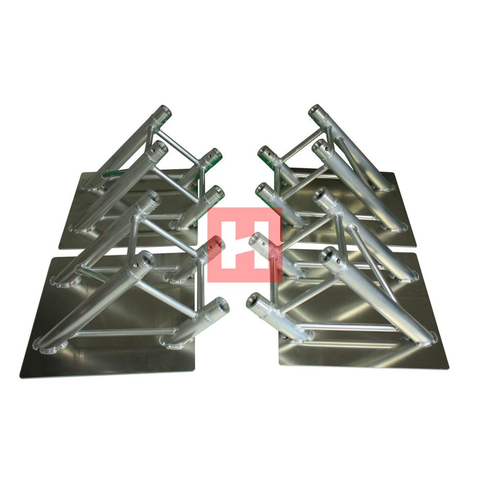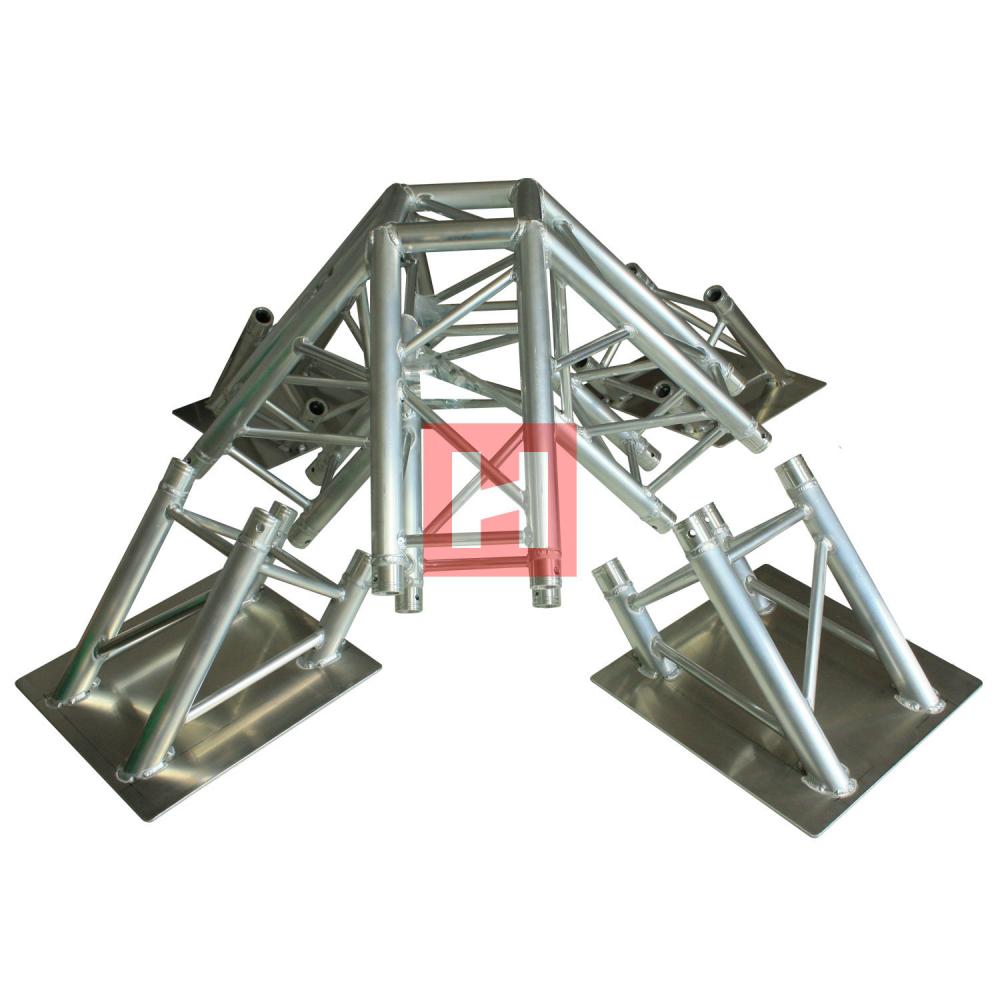 Technical data: Truss measure: 290 x 290 mm Tube: 50 x 2 mm Bracing: 20 x 2 mm Material: EN AW 6082 T6 EUROCODE 9 prooved TÜV certified factory 1x apex 4x baseplate incl. 4 conical connector sets Weight: 10,2 kg Powder coating available The conical connection used on our HOFKON series trusses is one of the most used connections in the world of truss. Our trusses are fast and simple to connect using the conical connector, pins and R clips. Optional are trusspins with M8 thread and nut available. The HOFKON series offer a large product range from up to 20 different sizes of truss and can be used in multiple applications such as: Pre-rig, fixed installations, ground- support or stage roof. Ideal for: small stage roofs booth construction |
