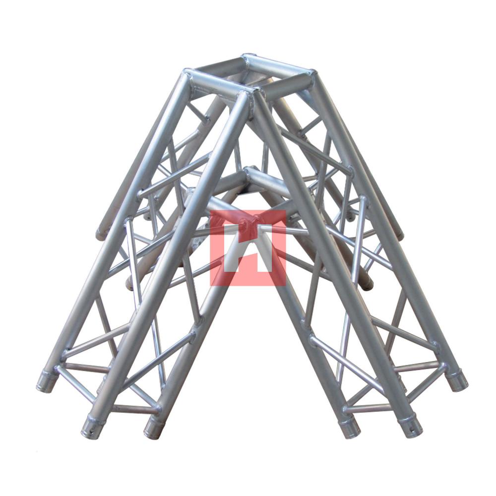 Technical data: Truss measure: 290 x 290 mm Tube: 50 x 2 mm Bracing: 20 x 2 mm Material: EN AW 6082 T6 EUROCODE 9 calculated TÜV certified factory 1x apex 4x baseplate incl. 4 conical connector sets Weight: 10,2 kg Powder coating available The conical connection used on our HOFKON series trusses is one of the most used connections in the world of truss. Our trusses are fast and simple to connect using the conical connector, pins and R clips. Optional are trusspins with M8 thread and nut available. The HOFKON series offer a large product range from up to 20 different sizes of truss and can be used in multiple applications such as: Pre-rig, fixed installations, ground- support or stage roof. Ideal for: small stage roofs booth construction |