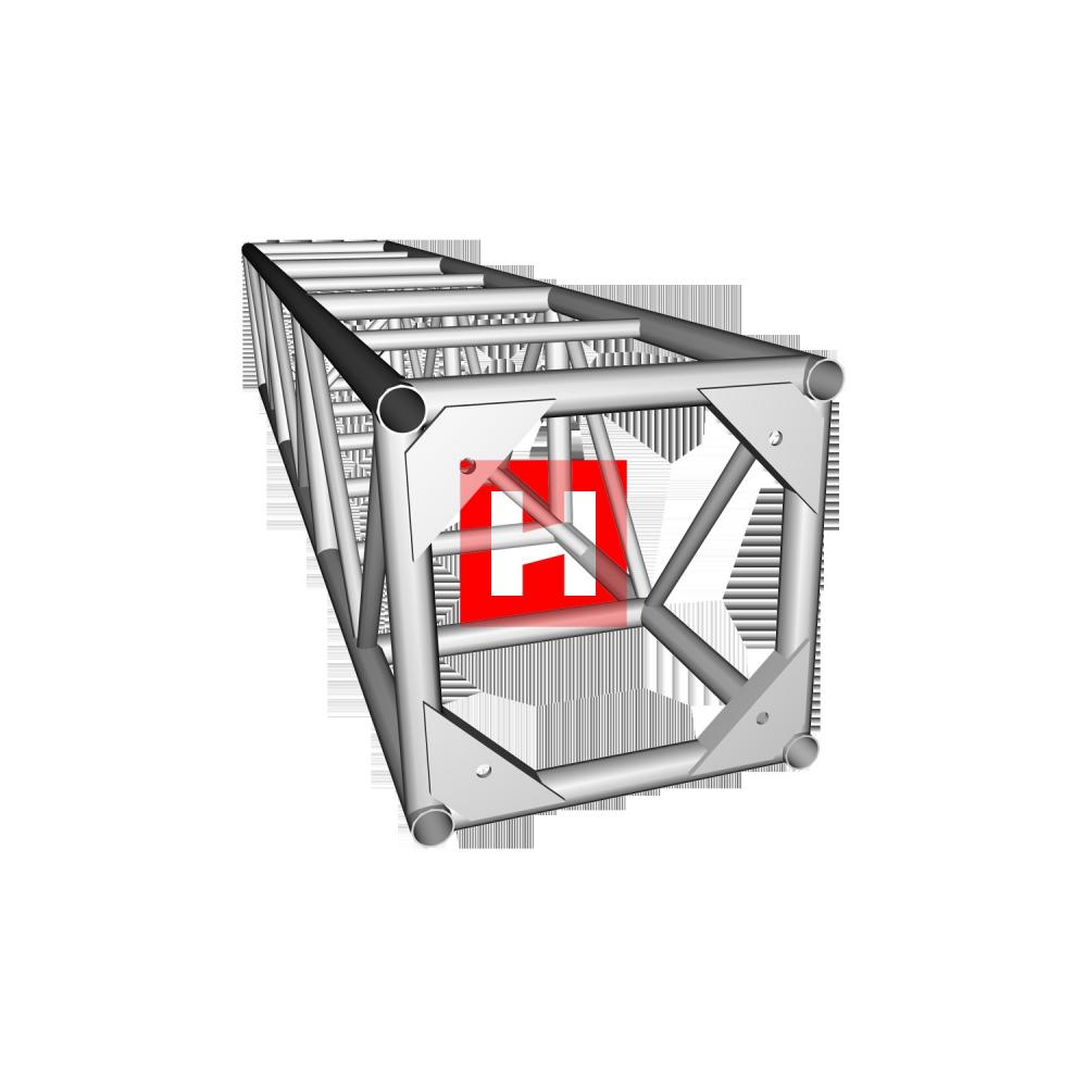 TECHNICAL DATA: Length: 3000 mm Tube: 50 x 3 mm Bracing: 30 x 3 mm Material: EN-AW 6082 T6 Eurocode 9 tested TÃV tested company incl. connectors Weight: 35,6 kg Powder coating by request With the hoFBolT 520-4 truss we present the largest truss system in this range, which is connected with bolts. According to the dimensions, you can already guess the very high performance of this truss. HOFBOLT 520-4 are used as ground-support in the construction of medium-sized stage roofs, and used as pre-rig. Fast assembly, easy handling and good availability contribute their part to the success of HOFBOLT 520-4. Ideal for: Medium stage roofs ground-supports pre-rig |