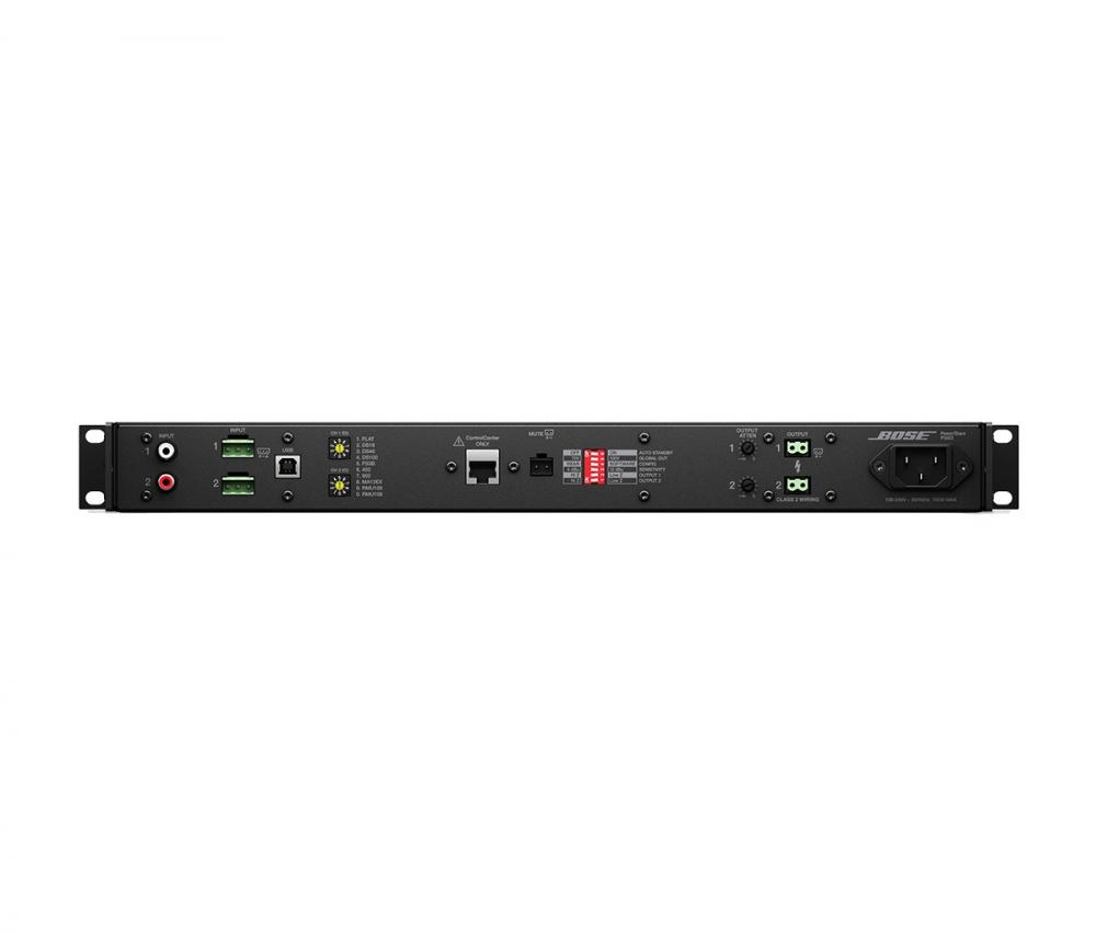 Patented PowerShare technology allows the total 600 watts of power to be shared asymmetrically across all outputs, as each output is capable of delivering full power. Instead of selecting amplifier power based on the needs of the largest zone, installers now have the freedom to use total amplifier power in the application. This enables more flexibility during the initial design, or later on-site when making unplanned changes that take advantage of surplus power. - Load-Independent Outputs Each channel can be configured for low-impedance (4-8 Ω) or high-impedance (70/100V) applications without bridging, use of jumpers, or software settings. - DFL™ System The Dual Feedback Loop system, inherited from the field-proven Bose PowerMatch® amplifier line, improves performance and reliability through continuous monitoring and control of both the current and voltage delivered to each output load. This combination provides improved linearity and lower distortion, while protecting loudspeakers. - Integrated Loudspeaker Processing with Optional PowerShare Editor Configuration For applications requiring additional signal processing the PowerShare Editor Software offers real-time selection and control of Bose loudspeaker EQs, 9-band PEQs, mixing, crossover, limiters, delay, and mute/output polarity through a USB connection. For basic setups without a PC, rear-panel settings allow installers to recall Bose loudspeaker equalization and protection per output channel. These features eliminate the need for an external signal processor in many applications. - ControlCenter Zone Controller Accessories Bose ControlCenter CC-1 zone controllers can be directly attached for remote adjustment of amplifier outputs further extending stand-alone amplifier applications. - Auto-Standby Designed to save power consumption when not in use. PowerShare amplifiers can be configured to automatically enter standby mode when the audio signal falls below a set threshold, then wake when audio returns. Applications - Performing arts venues - Houses of worship - Conference centers - Retail stores - Restaurants and bars - Hospitality venues |