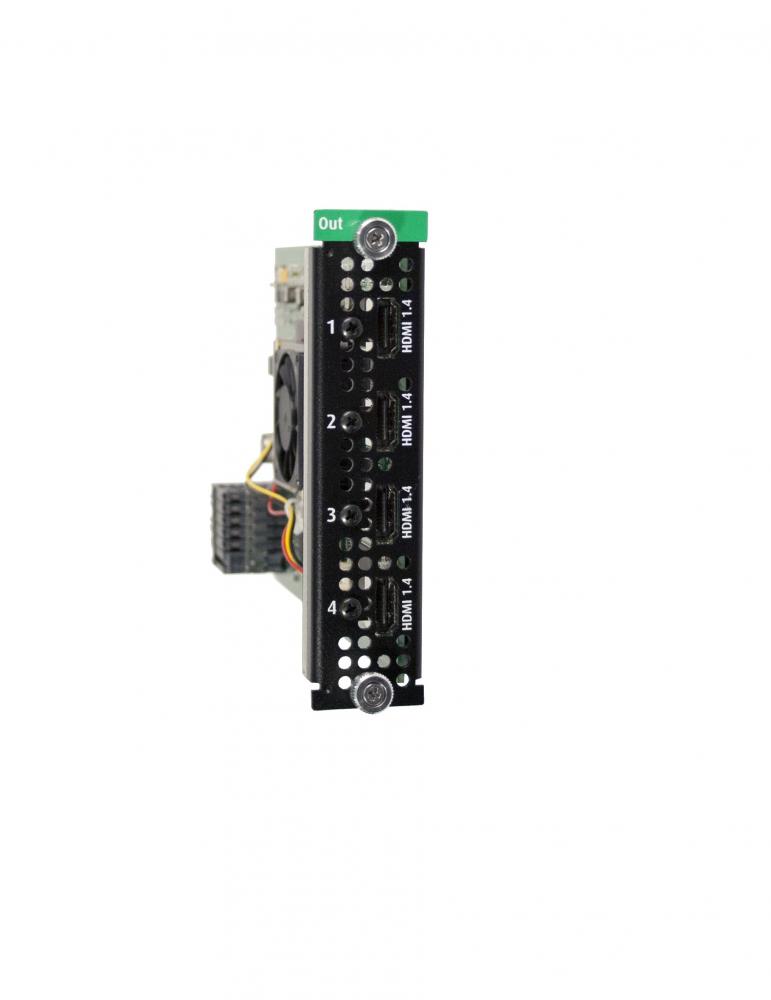 HDMI 1.4a (connectors 1&2 support high speed HDMI) Supports up to 4x 1200p@60 4:4:4, 2x 4K/UHD@30 4:4:4, or 1x 4K@60p/UHD 4:4:4 per card (dual cable) HDCP compliant Custom Area of Interest (AOI) SMPTE, VESA, CEA, and custom resolutions supported Supports automatic output configuration |