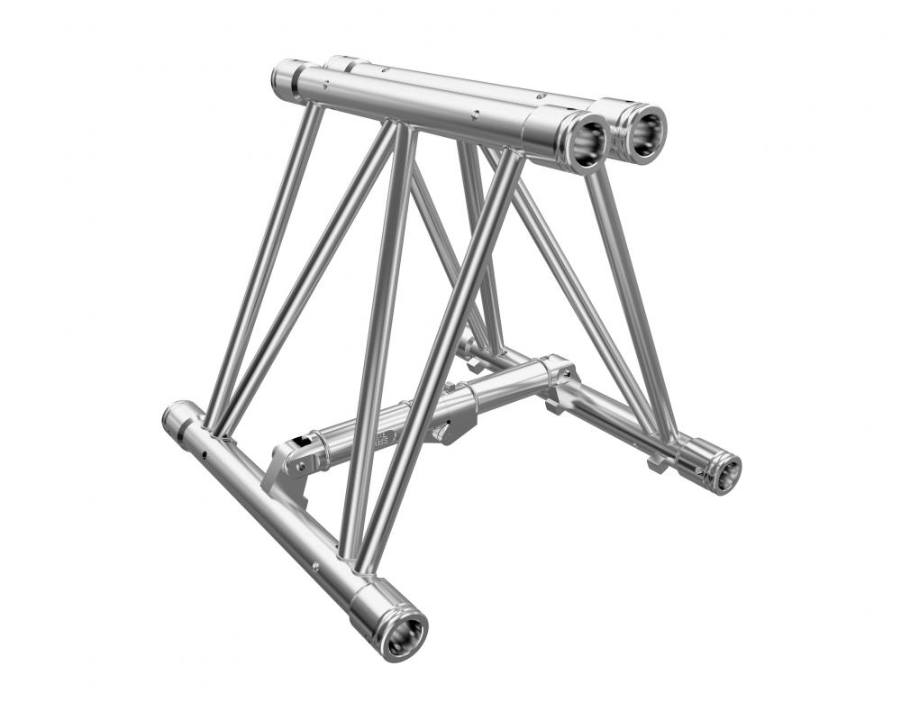 Die klappbare F52 Traverse von Global Truss ist speziell für den mobilen Einsatz sowie für Konstruktionen in einer Ebene konzipiert worden. Die Folding Truss zeichnet sich durch ihre große Belastbarkeit bei minimalem Platzbedarf aus, da sie einfach zusammengefaltet werden kann. Dadurch ist ein einfacher Transport und eine platzsparende Lagerung möglich. Durch die Eckstücke, T- und Kreuzstücke (nicht klappbar) werden auch Riggs in vielen verschiedenen Bauformen möglich, welche den mobilen Einsatz der Folding Truss auf Veranstaltungen, Messen und Konzertbühnen so beliebt machen. Don´t Rig Shit! |