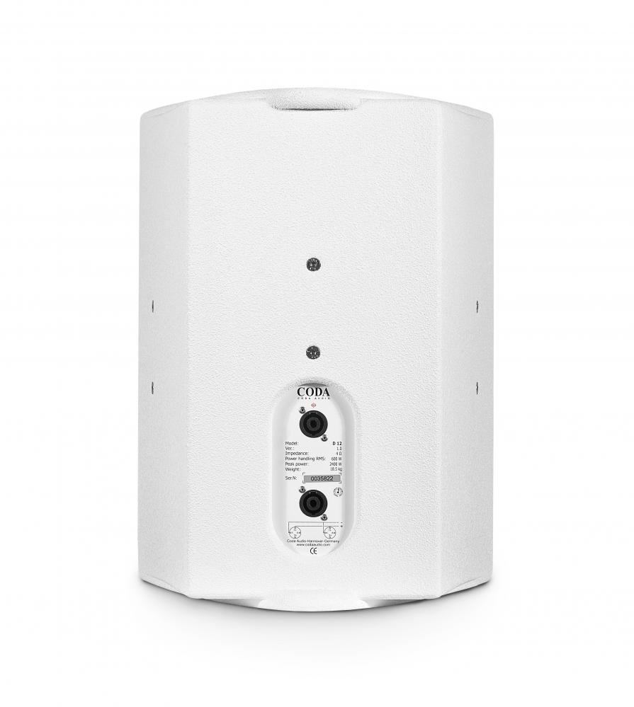 D12 ist ein professionelles Fullrange 2-Wege Koaxial-System für Installationsanwendungen. Es hat einen Übertragungsbereich von 60Hz – 20kHz (-6dB), eine AES Leistung von 600 W und kann einen Spitzenpegel von 132 dB (6dB Crest) erreichen. Die Abstrahlcharakteristik beträgt symmetrische 90° in der Vertikalen und Horizontalen. Das System wird über einen externen CODA AUDIO LINUS Systemverstärker betrieben, gesteuert und überwacht.