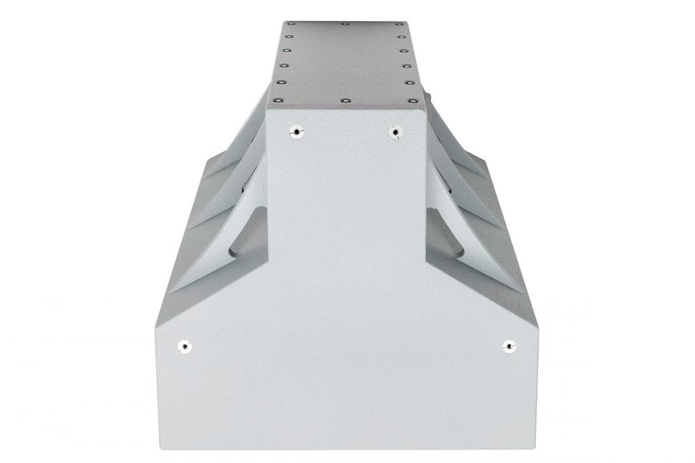 The STADIA100 LA range comprises three loudspeaker modules of very similar dimensions but identical horizontal directivity (100°) and which offer a choice of 10°, 20° or 30° dispersion in the vertical plane allowing modules to be combined to provide optimum coverage for the location. This allows the system designer to create a sound reinforcement solution that is extremely accurate at distance, which keeps audible reflections and thus unwanted reverberation to a minimum and so providing maximum intelligibility. The acoustic and physical performance of the STADIA100 LA range is a result of several different design criteria. These include frequency- specific coupling of dedicated components by carefully-controlled proximity, the design of our own D.P.R.W.G. waveguides, special mid/high- frequency horns (Outline’s V-Power Concept) and the physical construction of the enclosure including resonance-eliminating internal and external bracing and our unique system of weatherproofing. All three variants are two-way active designs, each containing eight 8” mid-range transducers and four 1.4” exit compression drivers mounted on Outline’s unique D.P.R.W.G. wave guide which provide the designated vertical directivity. Each module can handle in excess of 8 kW peak input power, will produce a maximum SPL of 149 dB and coherent reproduction down to 300 Hz with full directional control. The frequency response of each module is 65 Hz to 19 kHz. The enclosures are constructed from birch ply finished with ‘ outSIDE ’, an extraordinarily tough and waterproof elastoplastic coating which interacts with the cabinet material to provide extreme levels of long-term protection. The front grille is treated with an epoxy and polyester-based thermosetting powder paint and matched to an acoustically transparent waterproof sheet, so protecting the components from moisture and other contaminants, while amplifier connections are recessed so that a weatherproof plate with cable retention can be fitted. The STADIA100 LA modules are all fitted with eight (8) M10 rigging points made of corrosion-resistant anodized aluminium alloy (Ergal) allowing plenty of mounting options. All three STADIA100 LA models can be freely integrated with their companion subwoofer STSUB-215 . DSP system control and amplification for all modules are also available from the current Outline product range. Outline’s new STADIA100 LA range delivers a lightweight and cost-effective integrated solution for permanent installation in very large spaces that is simple to design and deploy, highly efficient, powerful, accurate and designed for purpose. |