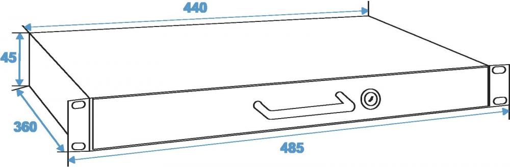 Praktische Schublade -Mit zwei Schlüsseln -Maße (B x T x H): -Kasten: 440 x 360 x 44 mm -Schublade: 415 x 350 x 30 mm -Höheneinheit: 1 HE |