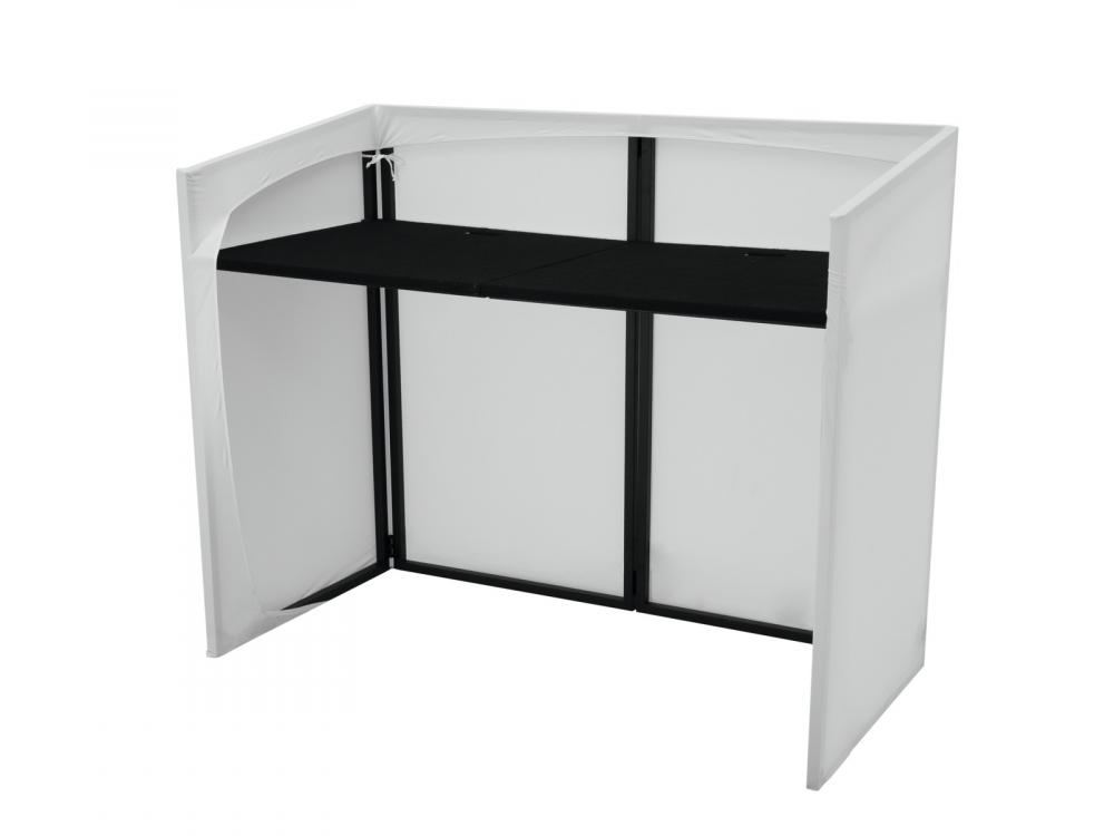 Portabler DJ-Tisch mit Verkleidung für mobile Anwendungen -Leichtes, tragbares Tischsystem für mobile DJs -Faltbare Konstruktion für einen leichten Transport -DJ-Equipment mitsamt Kabellage kann unauffällig verdeckt werden -Lichtdurchlässiges Stretchgewebe - ideal zum Hinterleuchten mit zusätzlichen Lichteffekten -Ablagefläche mit Filzbezug für DJ-Equipment -Schneller, werkzeugloser Aufbau -Stabiler Stahlrohr-Klapprahmen mit Scharnieren -Abnehmbare Stoffverkleidung für bequeme Reinigung -Stretchstoff erfüllt B1 (muss nach dem Waschen neu impregniert werden) -Farbe: weiß/schwarz -Mit Transporttasche |