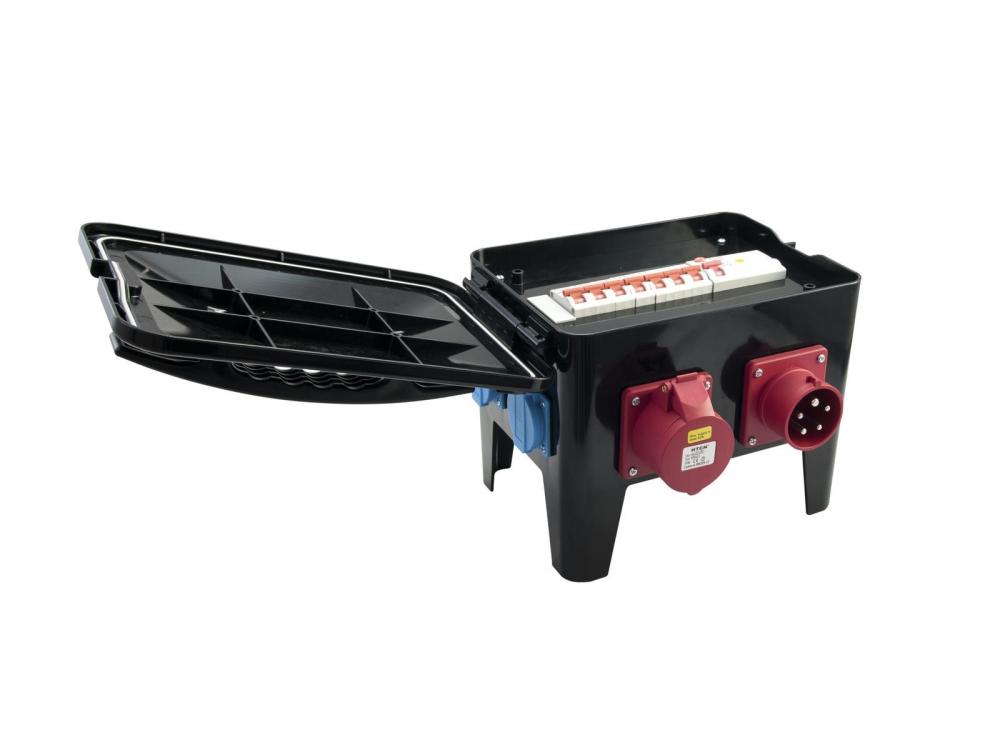 Baustromverteiler mit FI-Schutzschalter 16 A -Tragbarer, kompakter Steckdosenverteiler für den Einsatz im Freien -Spritzwassergeschützt in Schutzart IP44 -Robuste schwarze Kunststoffbox mit Tragegriff -1 x CEE-Anbaustecker 400 V/16 A, 5-polig -1 x CEE-Steckdose Bypass 400 V/16 A, 5-polig -2 x CEE-Steckdose 230 V/16 A, 3-polig -4 x Schutzkontaktsteckdose 230 V/16 A -Sicherer Schutz für FI- und LS-Schalter unter aufklappbaren Deckel -Absicherung: 1 x FI 40 A, 4-polig, 30 mA und 6 x LS C16 A/230 V -Stromanschluss: Stromeinspeisung CEE 16A 5-pol (m) Einbauversion -Stromausgang: 4 x Schutzkontakt (W) Klappdeckeleinbauversion abgesichert; 1 x CEE 16A 5-pol (w) Einbauversion Bypass; 2 x CEE 16A 3-pol (w) Einbauversion abgesichert |