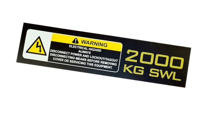 2000KG SWL/WARNING ELECT.HAZ.