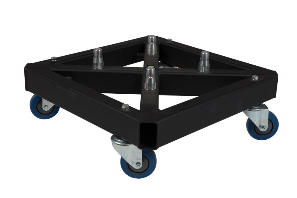 The tower base is a steel component which is the base part of your tower system. It has 4 transportwheels underneath to make transport easier. The unit has to be used with short or long outriggers to transfer the force from the tower into the ground