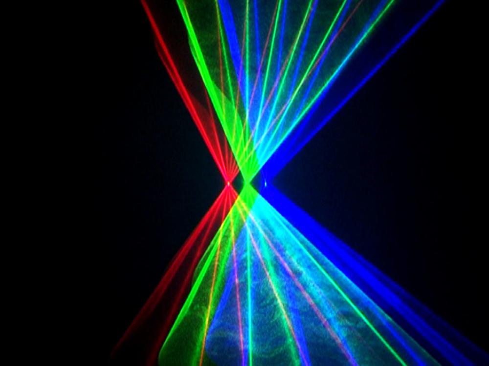 Der Laserworld EL-200RGB ist ein RGB Lasersystem mit einer Gesamtleistung von bis zu 200 mW. Die rote Laserdiode mit einer Wellenlänge von 650 nm, das grüne DPSS Lasermodul mit einer Wellenlänge von 532 nm und die royal-blaue Laserdiode mit einer Wellenlänge von 445nm gewährleisten helle Strahlen und schöne Farben. Die Laserstrahlen haben gute Spezifikationen mit einem Durchmesser von ca. 3 mm und eine Strahldivergenz von ca. 2 mrad. Der Projektor besitzt High-Speed Schrittmotoren mit 2-5 kpps und hat einen Scanwinkel von bis zu 30°. Etwa 50 voreingestellte Basismuster, wie beispielsweise Ebenen, Tunnel, Gitter, Wellen usw. können über DMX angesteuert werden, darüberhinaus sind aber auch ein Musikmodus und ein Automatikmodus verfügbar. Für den Musikmodus kann die Sensitivität des integrierten und regulierbaren Mikrofons angepasst werden. Auf der Rückseite dieses Gerätes befindet sich ein An-Aus-Schalter. Der dreifache Strahlaustritt sorgt für extra intensive rote, grüne und blaue Lasereffekte. Der Laserworld EL-200RGB ist eine gute Lösung für Einsteiger und wird häufig für den mobilen Einsatz, in Bars, kleinen Clubs, auf privaten Parties und in Partykellern eingesetzt. Mit extra-hellem 445 nm Royalblau!