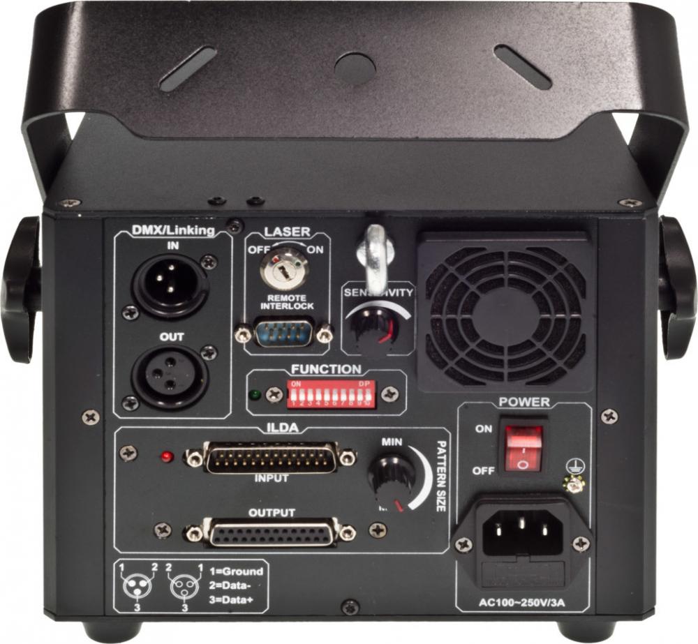 Der Laserworld CS-2000RGB Showlaser besitzt ein komplett neu konzipiertes kompaktes Gehäuse, was sich in dem geringen Gewicht widerspiegelt. Ein stabiler Haltebügel ermöglicht verschiedene Montage- und Positionierungsmöglichkeiten: der Projektor kann sowohl hängend als auch auf dem Bügel stehend eingesetzt werden und wird dadurch ideal für mobile DJs und temporäre Lasershows. Festinstallationen etwa an einer Truss, an Decken oder Wänden sind ebenfalls problemlos möglich. Der neue Laserworld CS-2000RGB ist ein RGB Lasersystem mit analoger Modulation, einer Gesamtleistung von bis zu 2'000 mW und einer Mindestleistung von 1'600 mW. Die rote Laserquelle mit einer Wellenlänge von 635 nm hat eine Mindestleistung von 250 mW, die grüne DPSS bei 532 nm von 250 mW und die royal-blaue Laserquelle hat eine Wellenlänge von 445 nm und eine Mindestausgangsleistung von 1'100 mW. Die Laserquellen ermöglichen brillante Farben und kräftige Laserstrahlen. Der Laserprojektor besitzt mit einem Strahldurchmesser von ca. 3 mm und einer Strahldivergenz von 2.0 mrad gute Strahleigenschaften und das Galvo-Scannersystem ermöglicht eine Scangeschwindigkeit von bis zu 30 kpps. Mikrofonsensitivität und Projektionsgröße können über zwei Drehregler auf der Geräterückseite eingestellt werden. Durch DMX, im Automatik- sowie im Musikmodus lassen sich etwa 200 integrierte Muster, wie Wellen, Tunnel, Kreise uvm. in verschiedenen Farben und Geschwindigkeiten projizieren. Ist der Automatik-Modus aktiv, werden die Muster ohne weiteres Zutun wiedergegeben, im Musikmodus erfolgt die Wiedergabe im Zusammenspiel mit der Musik. Neben den bereits aufgeführten Modi verfügt dieser Laserprojektor auch über einen Master-Slave-Modus. Showlaser derselben Serie (Slave-Projektoren), die via DMX mit einem Hauptprojektor (Master-Projektor) verbunden sind, geben bei diesem Modus die gleichen Muster aus, wie der Master-Projektor. Der Laserworld CS-2000RGB lässt sich mit Hilfe der integrierten professionellen ILDA-Schnittstelle auch über den Computer ansteuern. Dadurch können in Verbindung mit einer Lasersoftware eigene oder bereits existierende Lasershows, Logos, Texte, aber auch eigene Grafiken und Animationen ausgegeben werden. Das System bietet Sicherheitsfunktionen wie den Schlüsselschalter, eine Interlockschnittstelle und einen An-/Ausschalter. Der Laserworld CS-2000RGB ist ideal für semi-professionelle Anwendungen und eignet sich bestens für Bars, mittelgroße Clubs und Discos, aber auch für Vermietunternehmen, mobile DJs, für den privaten Einsatz und für Party-Locations jeglicher Art. |