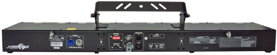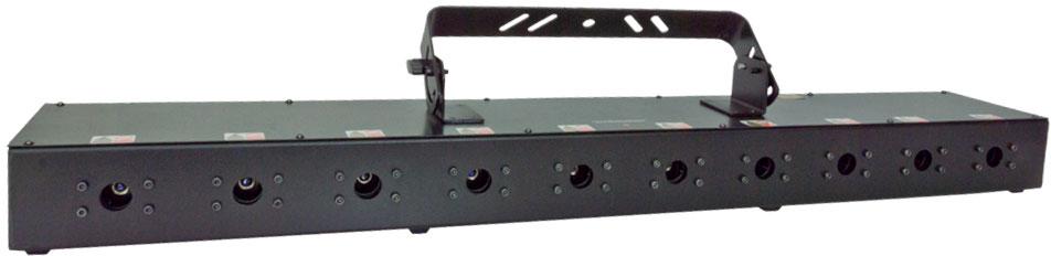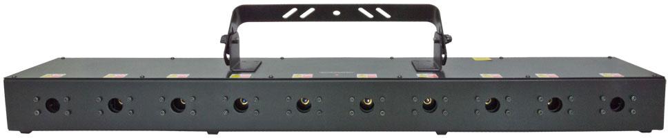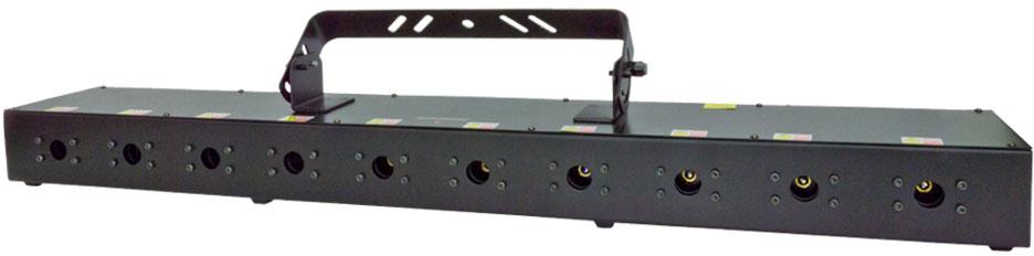 Dieser besondere Lasereffekt erzeugt einen Fächer aus Laserstrahlen und kann über DMX angesteuert werden, läuft darüberhinaus auch im Auto- oder Musikmodus. Die BeamBar 10RGB-W ist ein schmales, längliches Lasergehäuse, in dem sich 10 einzelne Laserausgabeöffnungen befinden: 10 RGB Weißlicht-Laserdioden mit jeweils 120 mW / 638 nm, 90 mW / 520 nm, 140 mW / 450 nm. Die Vorteile der BeamBar 10RGB sind: schönes weiß durch gleichmäßige Leistungsverteilung leuchtend helle Farben ein sehr gutes Strahlprofil eine kostengünstige Lösung zusätzliche Halterung zur 2-Punkt-Montage ist im Lieferumfang enthalten Alle Laserworld BeamBar-Geräte besitzen eine analoge Modulation, was einen verbesserten Farbverlauf und eine viel breitere Farbpalette gewährleistet. Diese Eigenschaften machen Laserworld BeamBar-Geräte ideal für alle Arten von Anwendungen, bei denen viele verschiedene Farbtöne und -übergänge dargestellt werden sollen. Durch ein 4-Punkt-Feinjustagesystem, welches leicht von der Gerätevorderseite zu erreichen ist, kann jeder Laserstrahl individuell eingestellt werden – somit ist das Öffnen des Gehäuses nicht notwendig. Die BeamBar 10RGB-W kann über 13 DMX-Kanäle reguliert werden, wodurch jede Laserquelle individuell gesteuert werden kann. Somit ist es möglich, viele verschiedene Lauflicht-, Strahl- oder Fächereffekte zu erzeugen. Aufgrund der Standard-DMX-Kompatibilität kann die BeamBar 10RGB-W problemlos in ein bereits vorhandenes Lichtsetup integriert werden. Dieser Laserprojektor verfügt auch über einen Master-Slave-Modus. Showlaser derselben Serie (Slave-Projektoren), die via DMX mit einem Hauptprojektor (Master-Projektor) verbunden sind, geben bei diesem Modus die gleichen Muster aus, wie der Master-Projektor. Die BeamBar 10RGB-W eignet sich ideal für Bühnen, Live-Auftritte, Clubs und Discotheken, sowie für TV-Shows und Showproduktionen. |