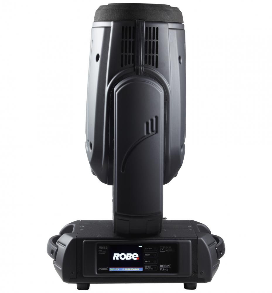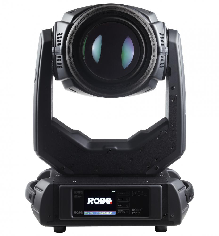 Here's our Point. It's very bright and super-fast with a sharp parallel beam that cuts through the air and across video with ease. It can project a static or rotating glass gobo to produce precision in-air and surface images with an even focal plane. Tight or at full 20 degree zoom, the output is crystal clear and brilliant. Add in either rotating, 6-way linear or 8-way circular, get rid of comma prisms to create wide reaching effects across any set. Drop in the frost fi lter and use any of the 13 rich colours to create a smooth even wash. The Pointe has an output far greater in size, quality and power than seems possible from its small, lightweight body–due to the effi cient short arc 280W discharge source and the Robe optical confi guration. This new technology fi xture even travels effi ciently in a case of 4 and will cover all your needs - Beam, Spot, Wash, FX - there is no point in using any other fi xture. You get the Pointe?