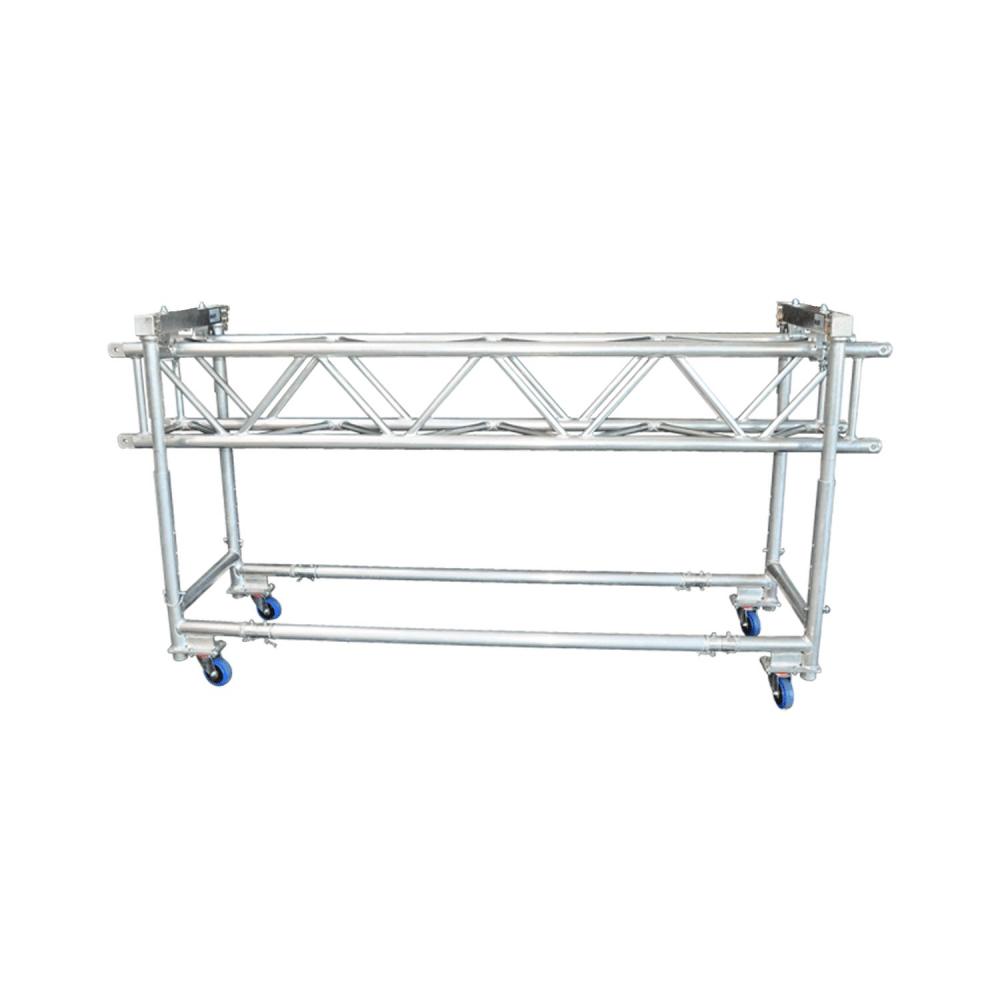 Technical data: without truss adaptor heigt adjustable contains: frame with 4x blue wheels, 2x square aluminium tube 60x60mm The offered product is only the frame. Without truss or coni tube. Both can be buyed seperatly. |