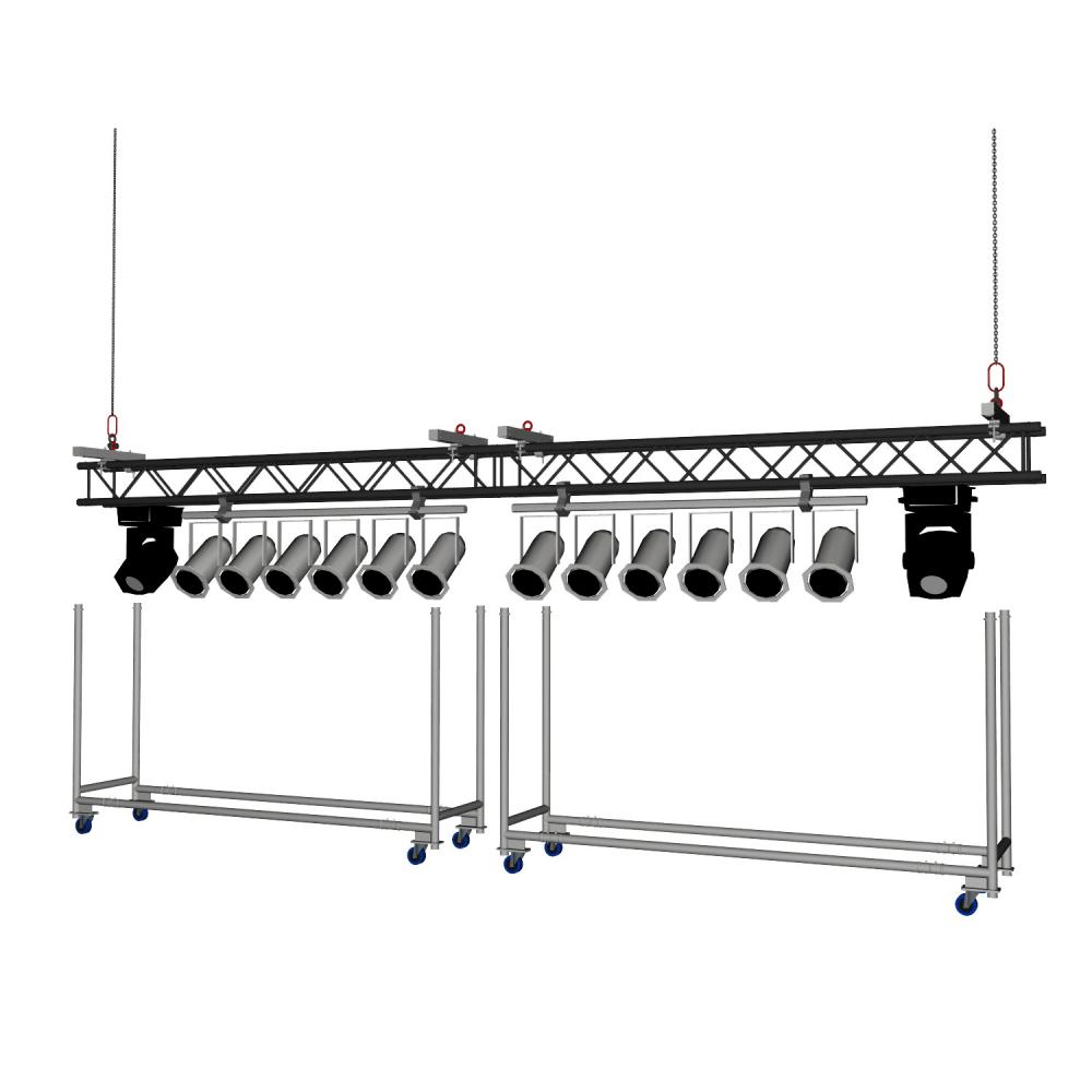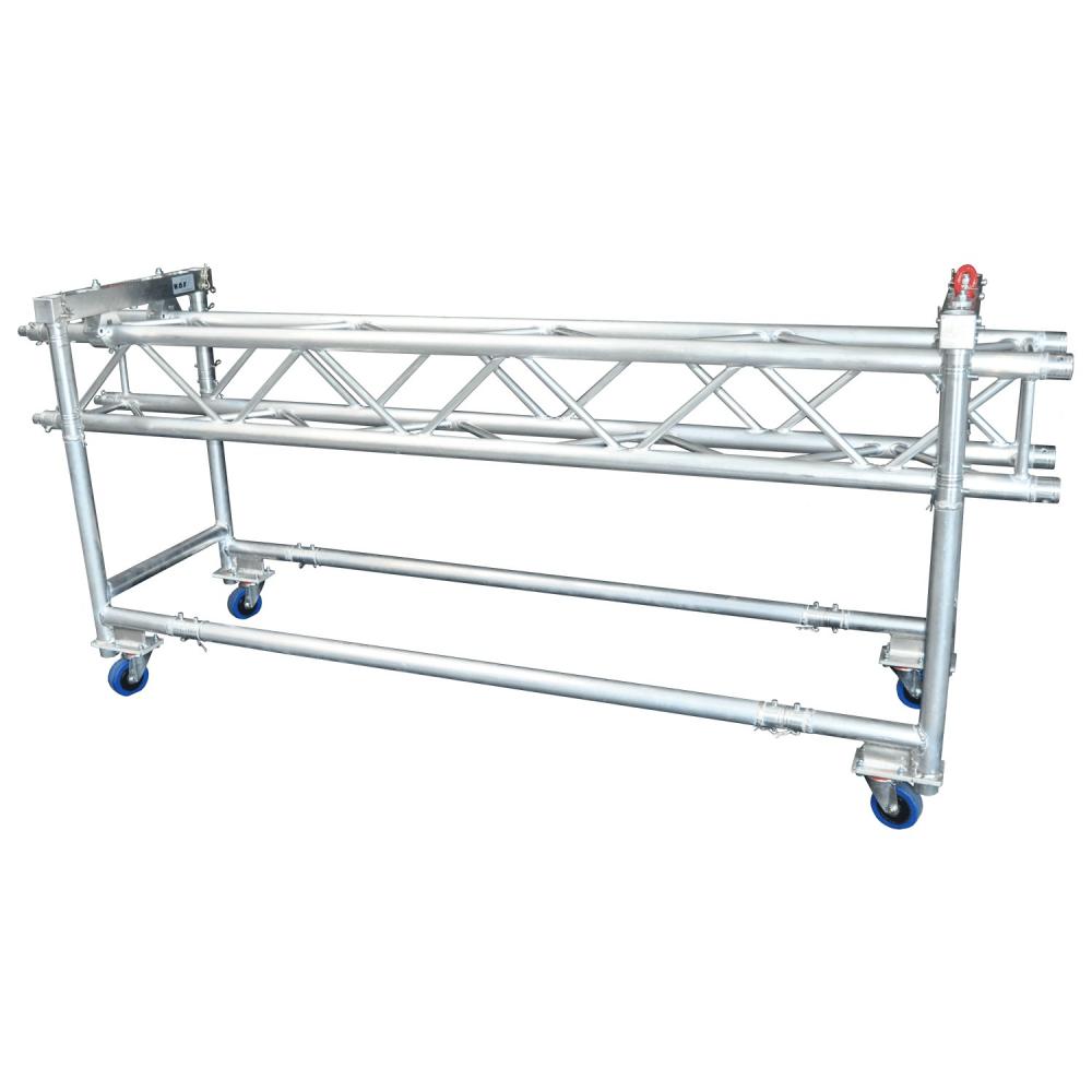 Technical data: with truss adaptor contains: frame with 4x blue wheels, 1x square aluminium tube 60x60mm The offered product is only the frame. Without truss or coni tube. Both can be buyed seperatly. |