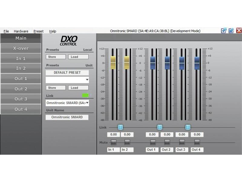 Digital signal processor (DSP) in miniature format, software included -Flexible routing configurations for all standard mono and stereo output operating modes -2 analog RCA inputs -4 analog RCA outputs -10-band parametric EQ per input and output -Parametric filters can be set as Bell, High Shelf, Low Shelf, Notch, Allpass -Active crossover with Bessel, Butterworth and Linkwitz-Riley filter with slopes up to 24 dB/octave -The intelligent software for PC and Mac allows convenient control with a computer -Up to 50 user presets storable in the device via software -Up to 10 ms signal delay adjustable for the inputs and outputs -Limiter and compressor for each input and output -Switchable phase per output (180°) -Lock function for protecting the program settings -24-bit AD/DA converter -48 kHz sampling rate -FIR filters -Real-Time-Analyzer function (RTA) -Incl. control software for programing and remote control via computer through micro USB interface -Wall mounting -Windows XP, Vista, 7, 10 and Mac OS X 10.5.8 and better -DSP: Digital signal processor FIR Filter -PC connect: DXO Software via USB Firmware can be updated -Power connection: Mains Input Socket (M) Coaxial power connector (M) Power supply cord with AC adapter (m) (provided) |