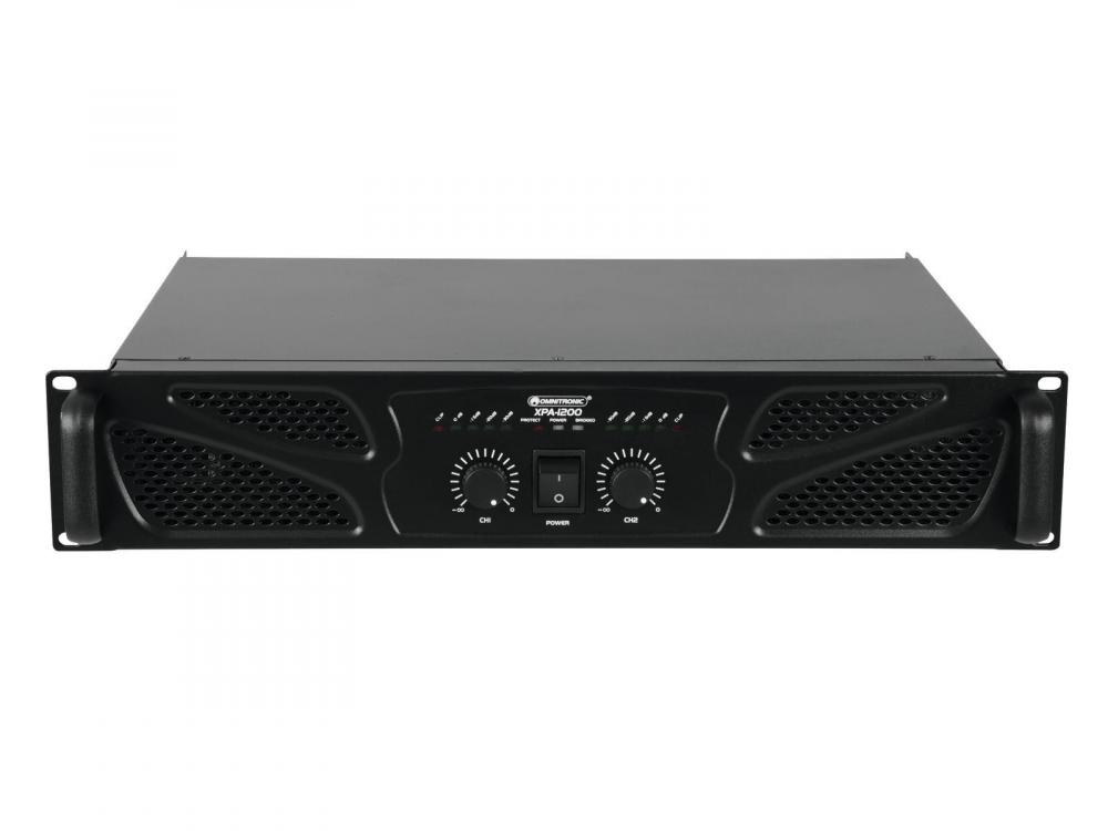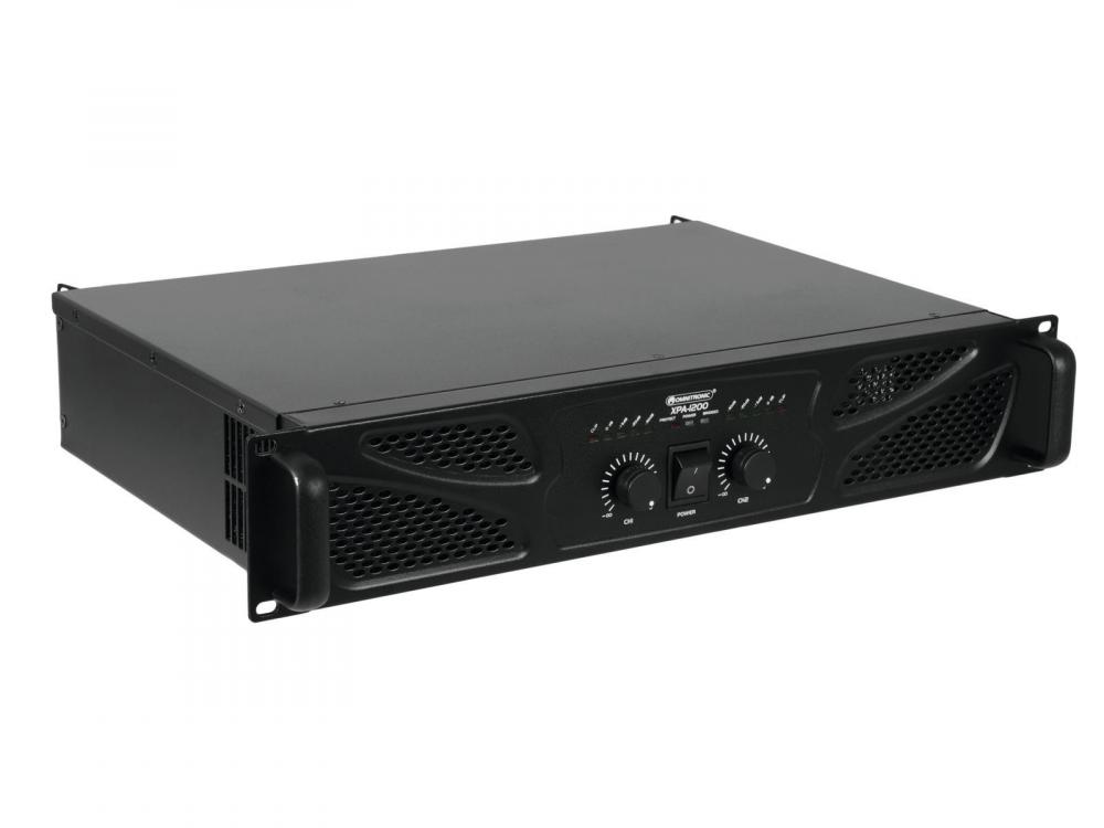 Power supply: 115/230 V AC, 50/60 Hz Power output sine: Stereo 4 ohms 2 x 610 W Stereo 8 ohms 2 x 420 W 8 ohms bridged 1 x 1200 W Frequency range: 20-20000 Hz, ±1 dB Damping factor: >350 Distortion factor: 0.5 % Slew rate: 20 V/µsec S/N ratio: >95 dB Input sensitivity: 1.4 V Input impedance: 20 kohms (balanced), 10 kohms (unbalanced) Input voltage: max. 21 dBV/9V Input connectors: 2 x XLR, 2 x 6.3 mm jack Output connectors: 2 x speaker, 1 x speaker (bridge), 2 x pairs of screw terminals Control elements: power switch, level control per channel, mode switch (stereo/bridged), limiter selector, groundlift selector LED indicators: bridged, protect, and 5-fold output meter with clip LED (per channel) Protection circuits: short-circuit, overheat, DC voltage, power on/off transients, softstart Construction: steel chassis with steel front panel Dimensions (DxWxH): 354 x 483 x 103 mm (19", 2 U) Weight: 12,4 kg Power consumption: 800 W 1/8 power Power/channel (8 Ohm): 420 W Power/channel (4 Ohm): 610 W Height: 8,9 cm Depth: 35,4 cm Width: 48,3 cm Power connection: Mains Input Socket (M) IEC connector (M) mounting version Power supply cord with safety plug (M) Power supply: 115/230 V AC, 50/60 Hz |