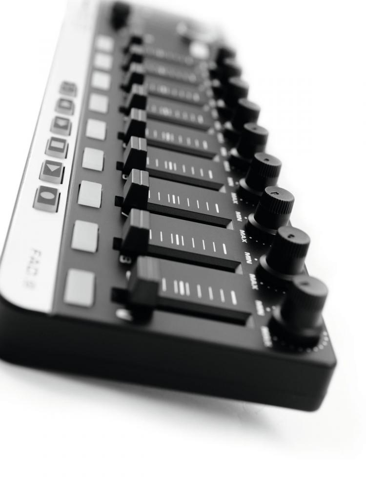 USB MIDI controller with 9 faders for music creators, producers and DJs -USB MIDI keyboard for creative music production with PC and Mac -Perform and compose anytime, anywhere -Also suitable for enlarging DJ sets -Super portable format fits laptop bags or backpacks -Works with virtually any audio software -9 freely assignable rotary controls -9 freely assignable faders -13 freely assignable buttons -6 transport buttons: Play, Stop, Rew, FF, LOOP, REC -4 programmable memory banks -1 master fader -USB cable and software editor for PC and Mac included -Plug & play - USB connection for PC and Mac requires no driver installation -USB bus powered - no additional power cable needed -Windows XP, Vista, 7, 8, 10 and Mac OS X 10.3.9 and better -Power connection: Mains Input Socket (M) Mini USB (F) mounting version Power supply cord for USB A mains connection (provided) -PC connect: USB Midi compatible |