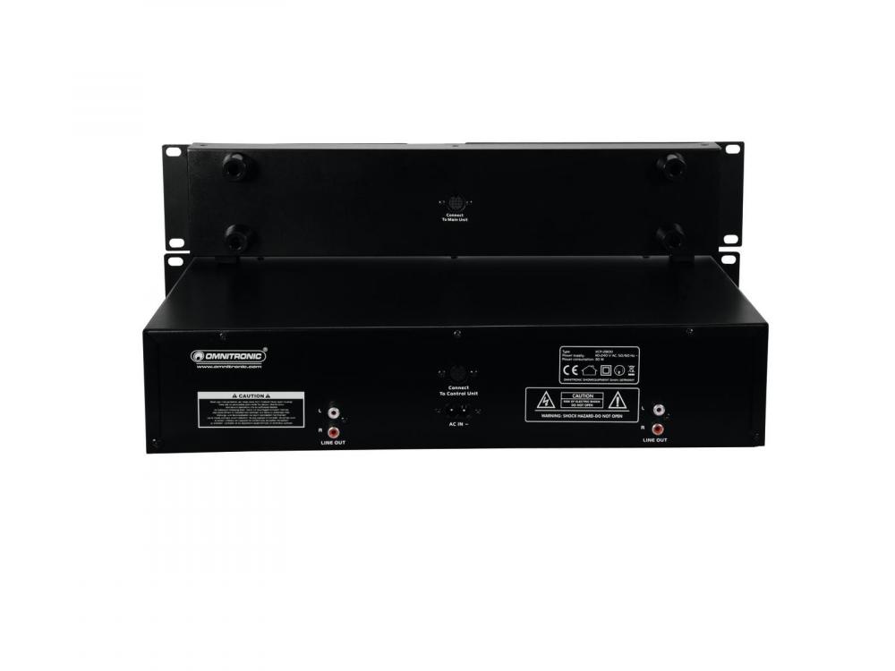 Dual CD player -Dual CD player for DJs -2 x 40 seconds anti-shock protection -Alphanumeric LCDs with blue backlight -Easy-turning jog dials with mode selector (fast or frame search) and Pitch Bend function -Comfortable track selection via skip buttons and +10 buttons -Pitch adjustment ±4 %, ±8 %, ±16 % -Pitch bend buttons -Cue function -Seamless Loop/Reloop function -Single or continuous play -Repeat function -Title programming -Indication of elapsed time, remain time or total remain time -Bargraph display -Pitch adjustment is displayed in % -Rubber buttons with color illumination -Extra large Play/Pause and Cue buttons -Rack installation -Housing design: (19") 48,3 cm rack installation -Power connection: Mains Input Socket (M) Euro plug (M) mounting version Power supply cord with Euro plug (M) (provided) Control panel -Height unit: 2 U Audio player -Height unit: 2 U |