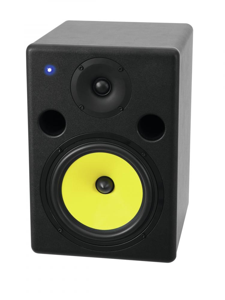 Active 2-way speaker with 8" woofer and 100 watts power -Active nearfield monitor for DJs and producers -2-way bass-reflex system with biamp amplifier -Separate controls for volume, high and low frequencies -For home studio and multimedia use -6.3 mm jack and 3-pin XLR input for connection the audio source -20 cm bass-midrange speaker and 2.5 cm dome tweeter with wave guide -Rugged black MDF cabinet -Power connection: Mains Input Socket (M) IEC connector (M) mounting version Power supply cord with Euro plug (M) (provided) |