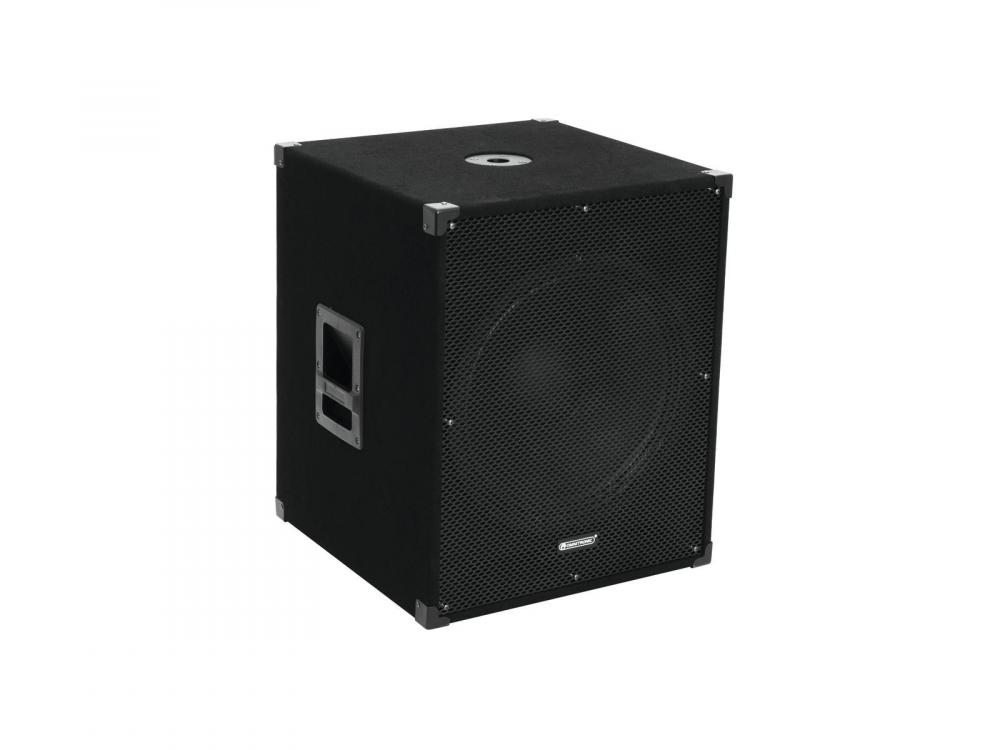Active bassreflex subwoofer (18") with 250 watts power -Active bassreflex subwoofer with 250 W RMS power -45 cm bass speaker (18") with 100 mm voice coil -Adjustable XLR input with feed-through output -XLR output with high-pass filter for active top speakers -Adjustable crossover frequency from 40 to 250 Hz -Bass boost, ground lift and phase control -Power and signal/limit indicator -Rugged wooden housing with black felt cover -Metal flange for mounting top speakers -Bar handles for easy transport -Impact-resistant metal grille, steel corners and support feet -For mobile applications and permanent installations -Suitable for car transport -Power connection: Mains Input Socket (M) IEC connector (M) mounting version Power supply cord with safety plug (M) (provided) |