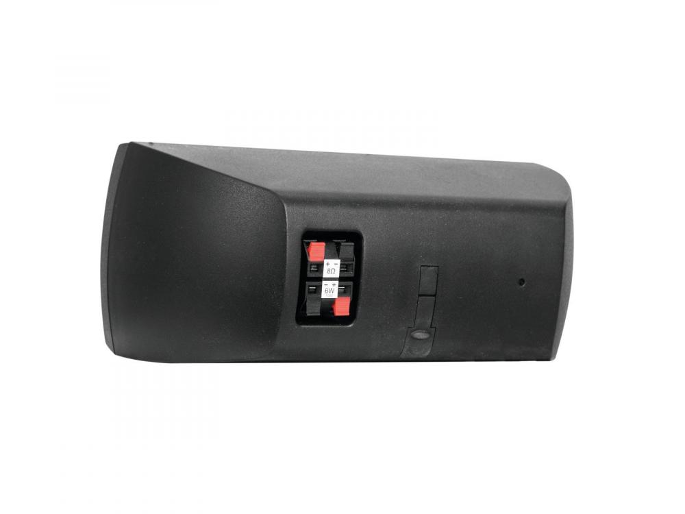 Universal wall speaker system -100 V PA speaker system for general applications -2 x 6 cm full-range speaker (2 x 2.5") -3.5 x 6 cm passive membrane -100 V transformer -Attractive ABS plastic cabinet (scratch-resistant) with metal grille -Durable mounting plate with joint for panning and tilting allows ceiling or wall installation in most varying angles -Spring clamps -Ideal for PA applications in restaurants, bars, shops or conferences |