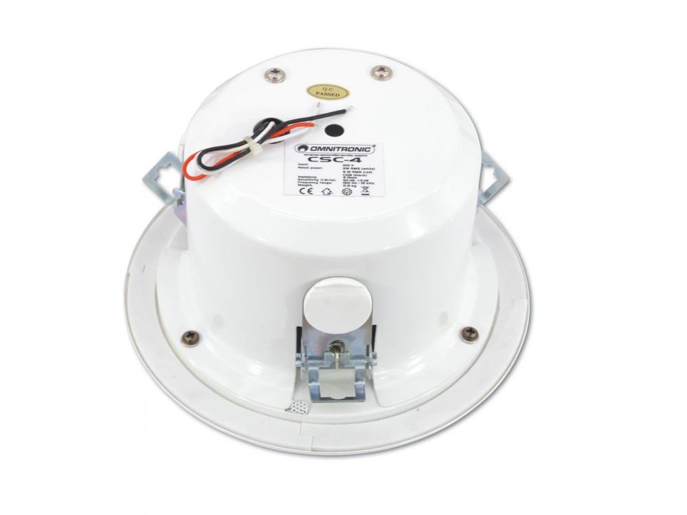 4" full-range speaker with firedome, 100 V, 6 W RMS, Ø 150 mm -100 V transformer with 2 power taps -Metal firedome for safety in case of fire -Easy mounting, similar to standard flush-mount lights -For amplifying systems in indoor PA systems |
