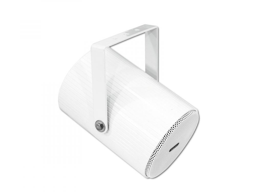 Weatherproof 5" speaker with mount, 100 V 5/10 W RMS -100 V speaker system for wall and ceiling installation -Weather-proof (IP44), scratch-resistant aluminum housing -Connection cable with 3 power taps -Movable mounting bracket -For outdoor and indoor amplifying systems |