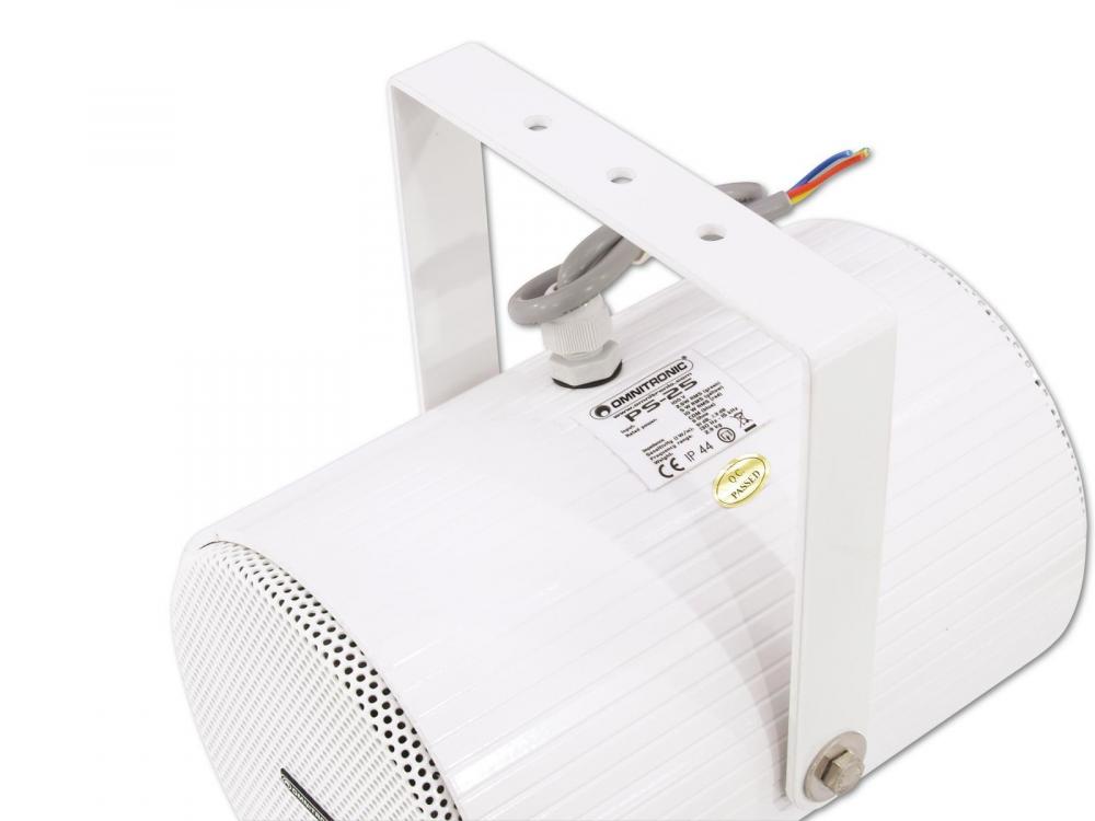 Bidirectional speaker (2 x 6.5") with mount, 100 V 10/20 W RMS -100 V speaker system for wall and ceiling installation -2 built-in speakers for bidirectional radiation -Connection cable with 3 power taps -Weather-proof (IP44), scratch-resistant aluminum housing -Movable mounting bracket -For outdoor and indoor amplifying systems |