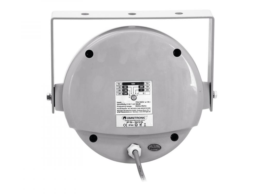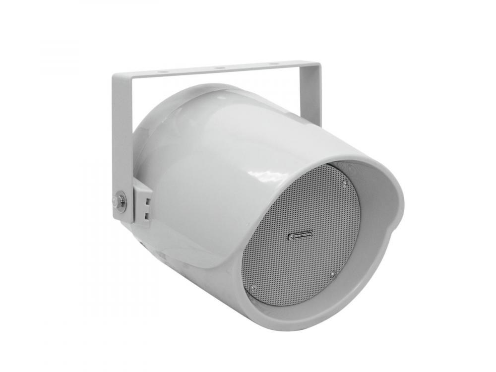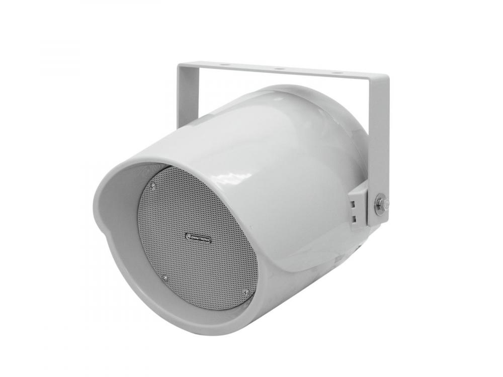 Weatherproof 5" speaker with mount, 100 V 3.8/7.5/30 W RMS -100 V speaker system for wall and ceiling installation -For 8-ohm and 100 V systems -4-step power selector -Loose cable ends -Movable mounting bracket -Weather-proof plastic cabinet (IP44) -For outdoor and indoor amplifying systems |
