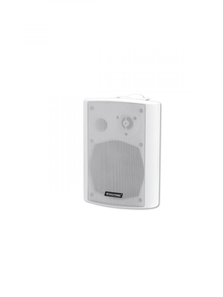 2-way speaker with mount, 100 V, 30 W RMS -100 V technology with high-quality components for hifi sound -2-way bass-reflex system -White plastic housing (ABS) with metal grille -Trapezoidal cabinet for corner installation -Movable mounting bracket -Connection via open wires -For indoor amplifying systems |