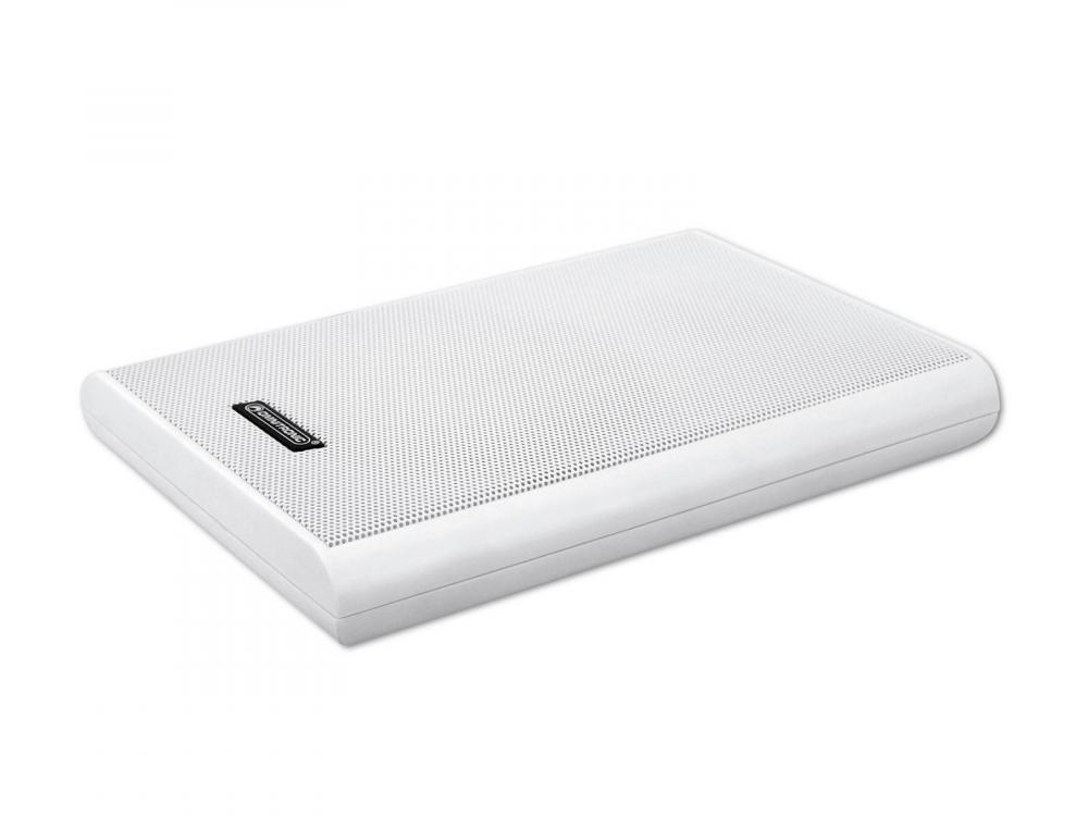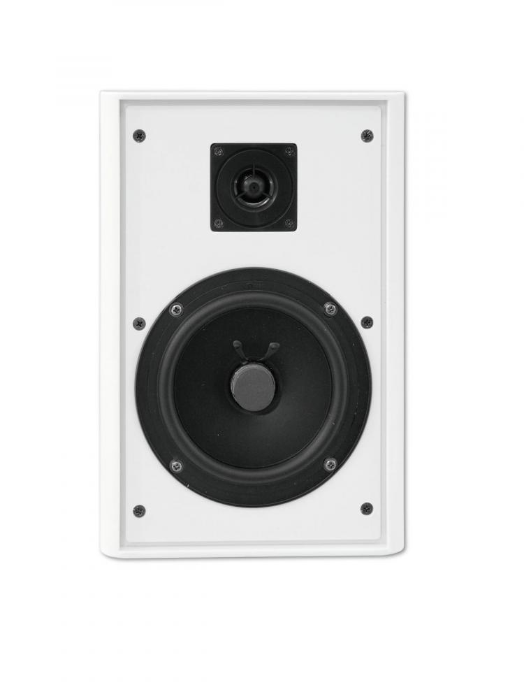 Flat 2-way speaker with mount, LF: 5" HF:1.25" ,100 V, 10 W RMS -2-way system with 13 cm neodymium bass-midrange speaker (5") and 3 cm tweeter (1.25") -Suitable for 100 V or 4-ohm operation -White plastic housing with integrated wall holder -Extra flat design for wall mounting -Spring clamps -For indoor background PA applications |