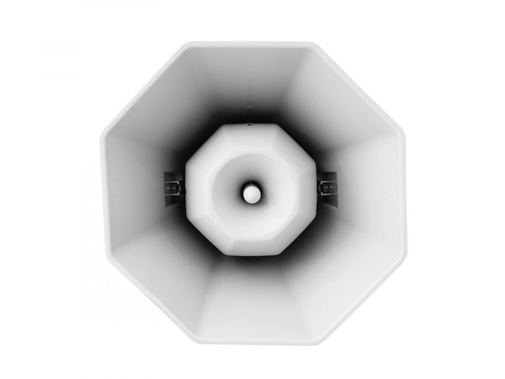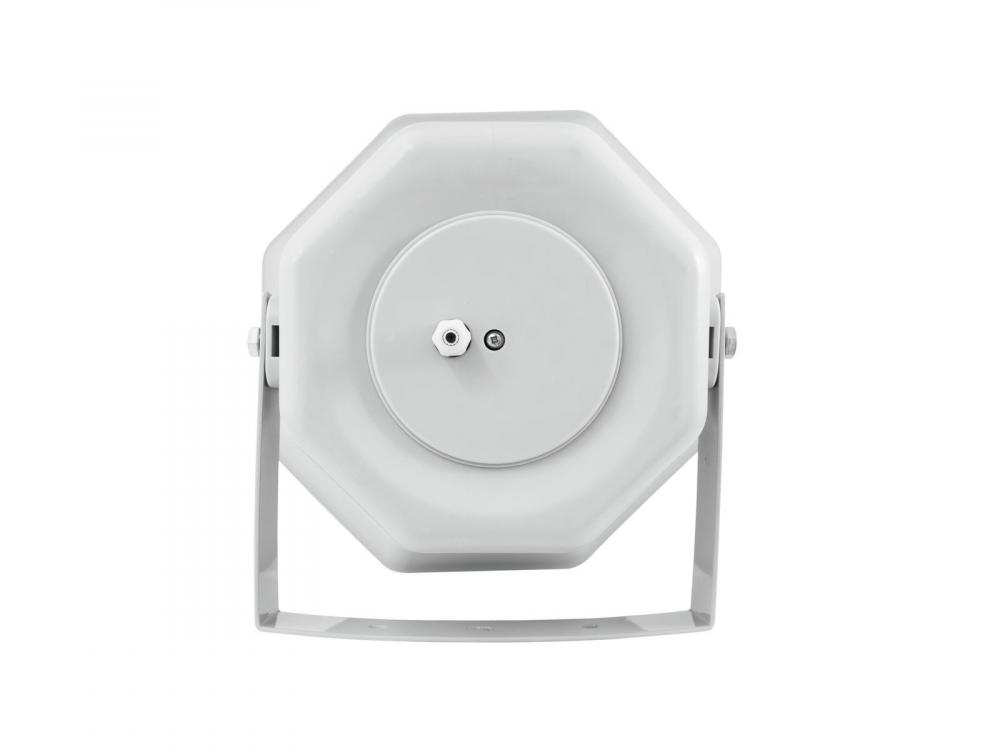 Weatherproof speaker, LF: 6.5" HF: 1" - 100 V 20/40/80 W RMS -2-way horn speaker for 100 V operation -4 power taps (10 W, 20 W, 40 W, 80 W) -16.5 cm woofer (6.5") and 2.5 cm tweeter (1") -PTC tweeter protection -High sound pressure and wide frequency range -Weather-proof plastic housing (IP44) -Octagonal enclosure -Swivable mounting bracket -Connection via terminal strip -For outdoor amplifying systems in football stadiums, outdoor pools, open air events |