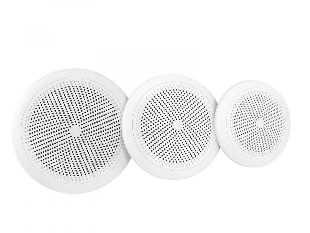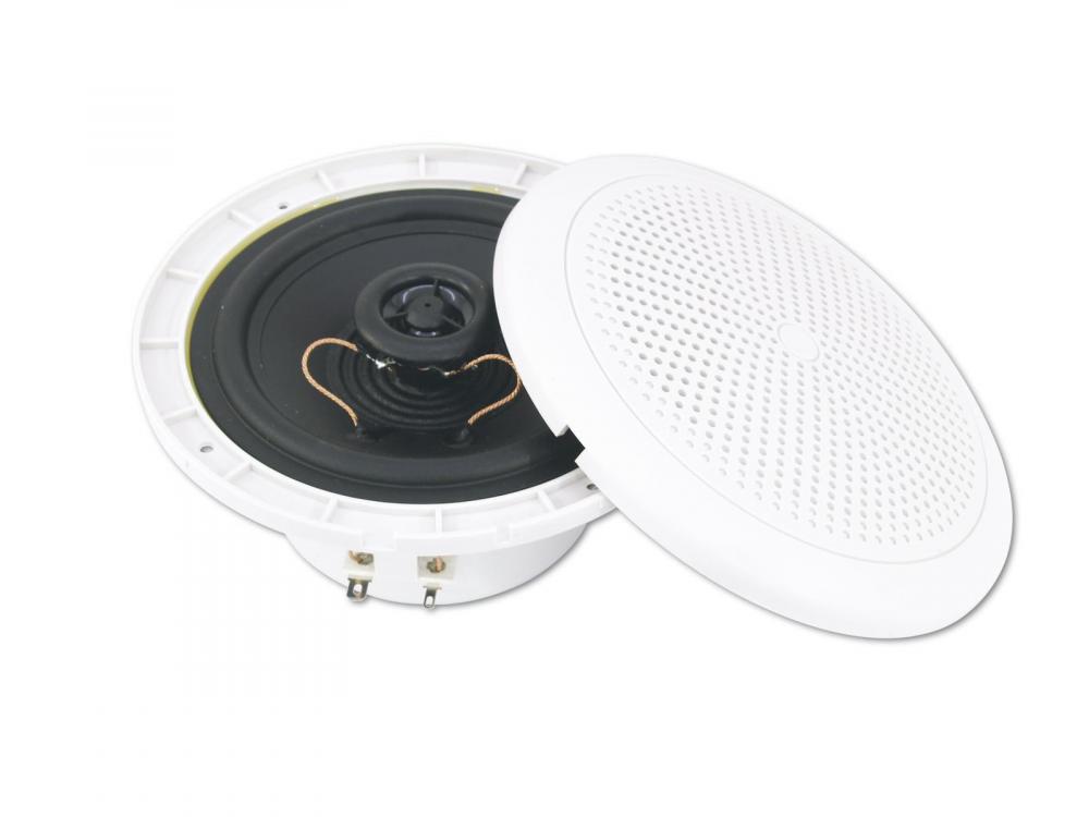 Weatherproof 2-way speaker, LF: 5" HF: 1", 25 W RMS / 8 ohms Ø 164 mm -2-way system with 13 cm woofer (5") and 2.5 cm tweeter (1") -8 ohm speaker system -Splash-proof (IP44) construction for outdoor use -White plastic housing -For outdoor and indoor amplifying systems |