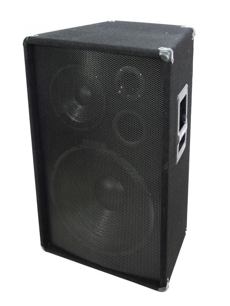 Full-Range speaker-system for disco or live music with 15" woofer and 1000 watts power -Rugged Full-Range speaker-system in a stable wooden housing -38 cm woofer (15") with special, higly temperature resistant vibrating coil -Tweeter with coil-driver for powerful treble -Mid-range membrane loudspeaker for a smooth sound when reproducing speech or singing -With passive 3-way crossover -Powerful bass via voluminous housing and bass-reflex tube -Very high durability -With bar handles -Scratch-resistant, black felt-covering -Strong protective grille for perfect protection -With stable protective steel corners -With flange for speaker-stand installation etc. -Compact speaker-system for car transport -The ideal speaker-system for live music, presentations, bands etc. |