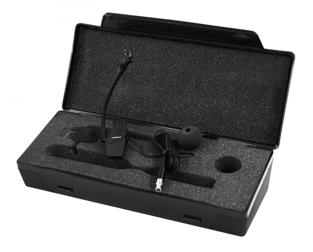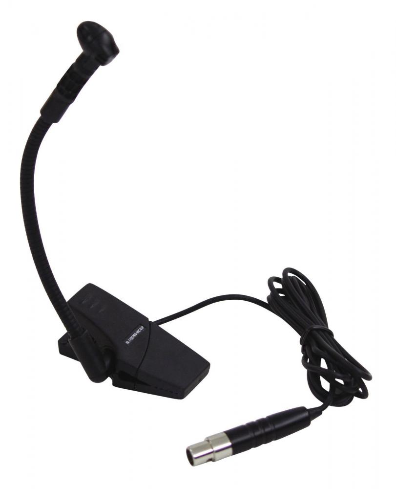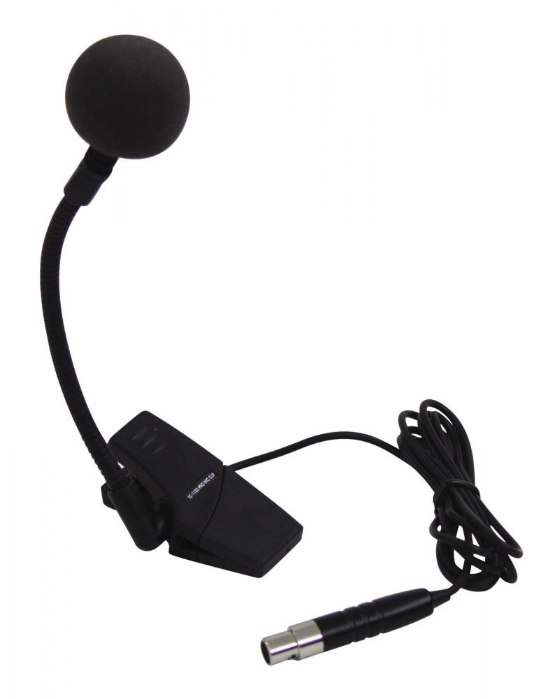 Professional condenser microphone for wind instruments, with spring clamp -Light and compact condenser microphone for woodwind and brass instruments -Mini XLR output connects a pocket transmitter for wireless operation -Shock-reducing rubber spring clamp -Miniature gooseneck, can be turned by 230° and allows for optimum adjustments -Wide dynamic range with very clear and fast sound -Special shock-absorbing cartridge support -Requires phantom power -Incl. windshield -Supplied in stable transport box -Excellent quality at a low price -Mute function: No -Polar pattern: Unidirectional |