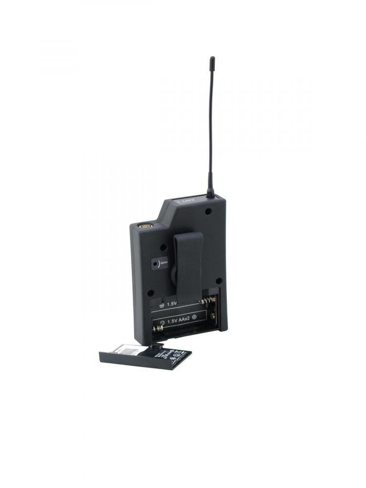 Universal multifrequency pocket transmitter -Transmitts microphone signals to a receiver with the same carrier frequency -Operation in the low-interference UHF band (792,500-814000 MHz) -Up to 8 pocket transmitters with 8 receivers can be operated simultaneously -Frequency and sensitivity switchable via mini switches -Can also be used for direct instrument pickup -500 carrier frequencies switchable in 50 kHz steps -LCD display with battery capacity and frequency -Battery capacity transmission to receiver -Lock function for preventing unintented shutoff -For 2 x 1.5 V mignon batteries (type AA) -Operation range 200 meters -Connection via mini XLR socket -A lavalier microphone or a headset microphone can be ordered separately -License-free and approved in Germany -Mute function: On/off/mute switch -Power connection: Battery/battery pack |