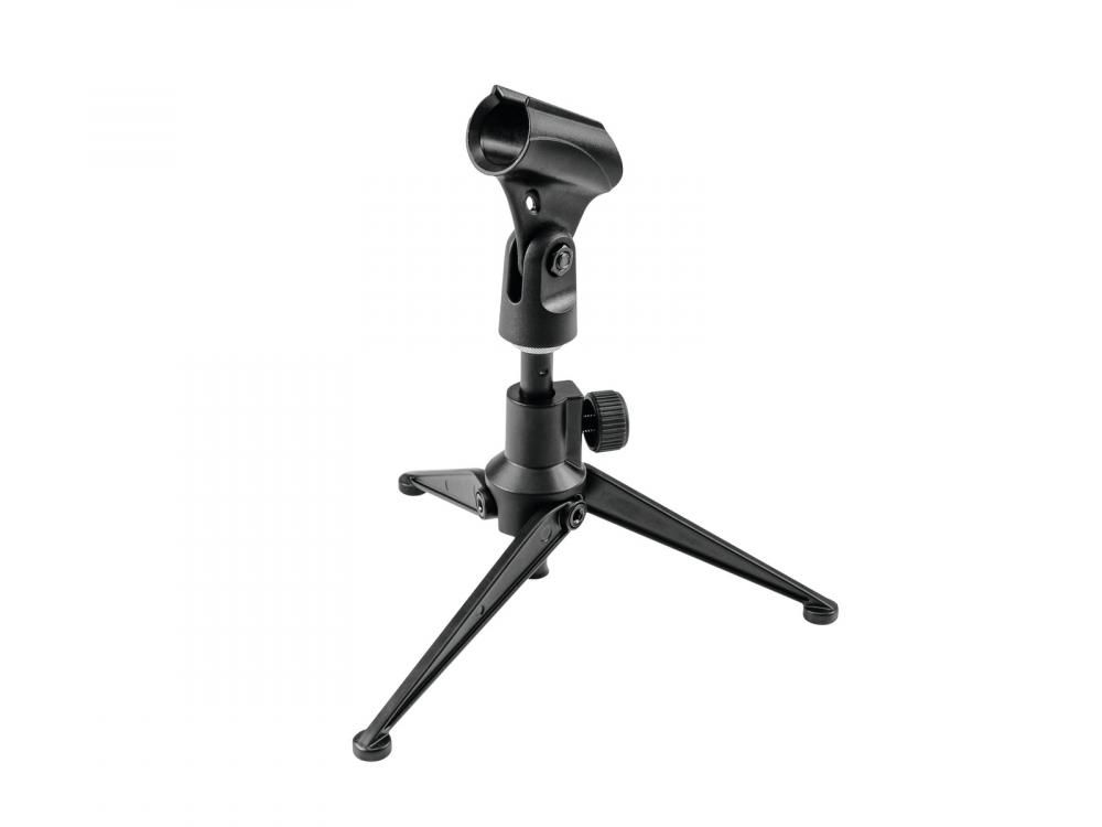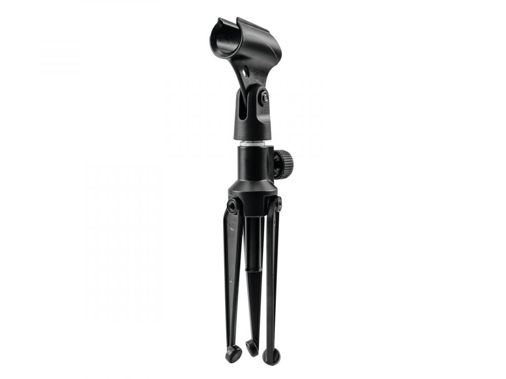 Compact table stand, can be retracted, extendable from 105-155 mm -For microphons included holder -Three detachable feet -Height infinitely variable |