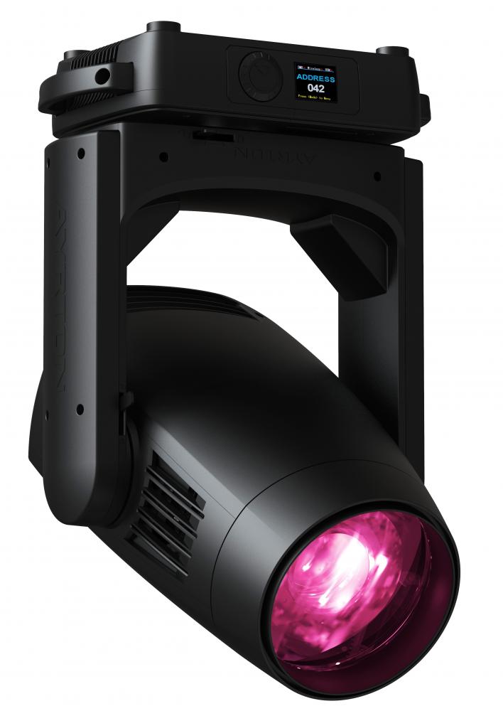 KARIF is a versatile new fixture in the «LT» (Long Throw) series, adding to the AYRTON product offering for long-distance applications. This is a machine with phenomenal powers capable of delivering stunning visual effects. An ultra-compact 300 W beam-spot luminaire equipped with a 168 mm frontal lens, KARIF offers an astronomical zoom ratio of 17:1 and a zoom range of 2.8° to 49°. To achieve an ultra-intense beam with an LED source, AYRTON uses an entirely new miniaturised high-efficiency low-etendue compact LED module. Calibrated at 8500 K, it can generate powerful metallic white light and deep, vivid colours suitable for this type of application. KARIF provides overall output of 13,000 lumens at a colour temperature of 7500 K. In this first hybrid LED luminaire, AYRTON has added continuous rotation to its panoramic movement to expand the possibilities for creating complex special effects. KARIF offers full-featured standard equipment including a CMY colour mixing system and a multi-position colour wheel with a variable CTO, seven colour-temperature correction filters, and six complementary colour filters on two concentric circles (patent pending). The effect section includes one wheel with nine interchangeable rotating HD glass gobos. For KARIF-LT to reproduce multiple images, AYRTON has developed a totally new wheel of fixed multi-position gobos with instant access to 19 HD glass gobos and 20 metal gobos on three concentric circles (patent pending). KARIF is also equipped with a bi-directional continuous dynamic effects wheel. The prism effect system comprising four individually combinable prisms, coupled with 48 fixed and rotating gobos and an ultra-intense beam, can create unusual and spectacular kaleidoscopic effects. |