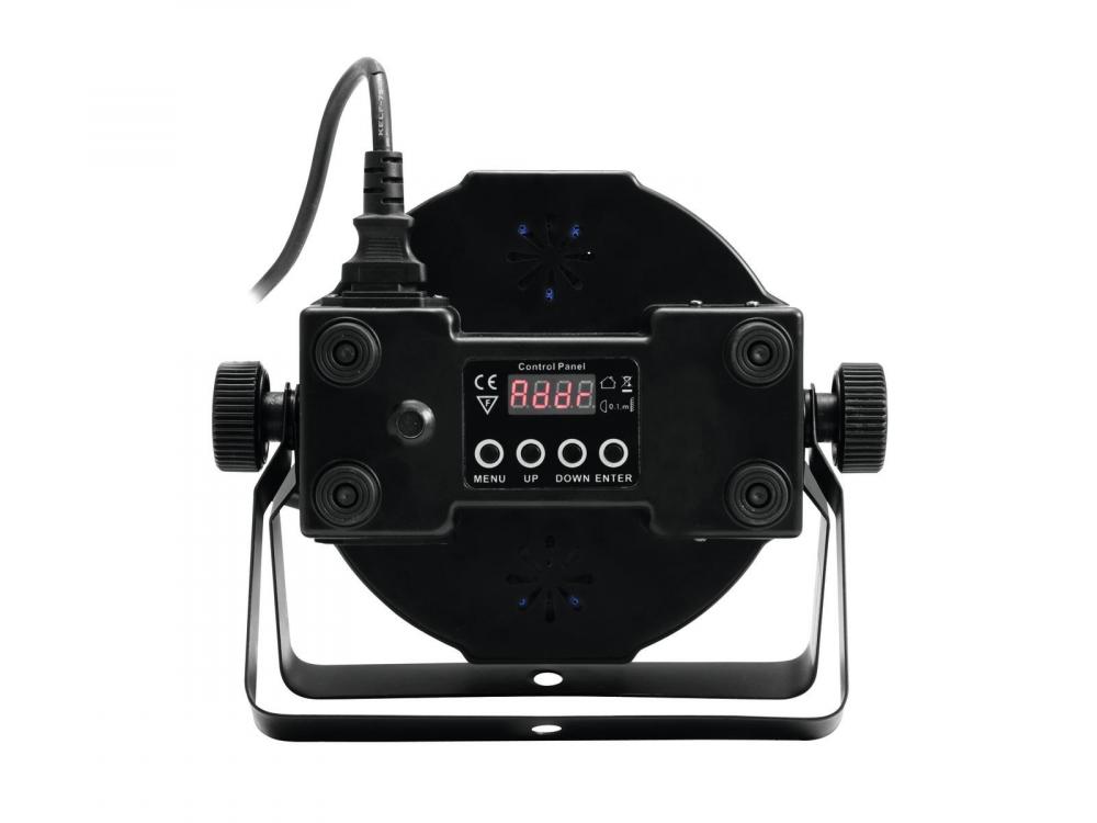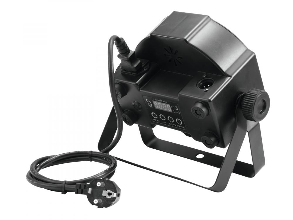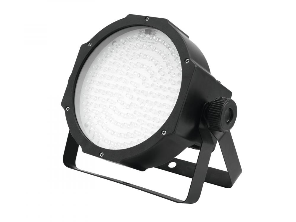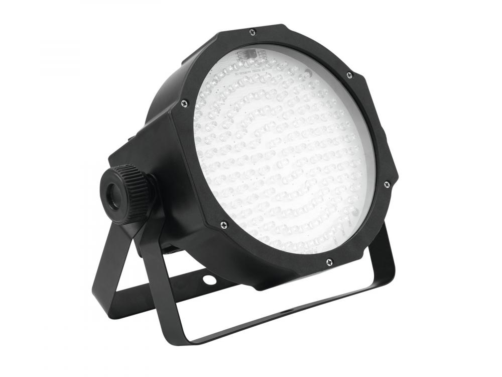 Flat spotlight with 144 LEDs in the colors red, green, blue and white -Operable in stand-alone mode or via DMX interface -DMX512 control possible via any commercial DMX controller (occupies max. 6 channels) -4 or 6 DMX channels selectable for numerous applications -Master/Slave function for synchronous operation with several devices -Sound-control via built-in microphone -Microphone-sensitivity adjustable |