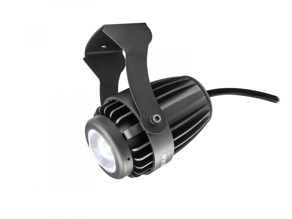 Weather-proof pinspot (IP65) with strong 10 W LED in cold white -1 bright cold white 10 W LED -Fanless cooling concept -Compact aluminum housing -Mounting bracket -Case color: Grey -Color temperature: 6400 K -Power connection: Fix Power supply cord with safety plug (M) -Control: without -LED: 1 x high-power 10 W CW (homogenous color mix) |