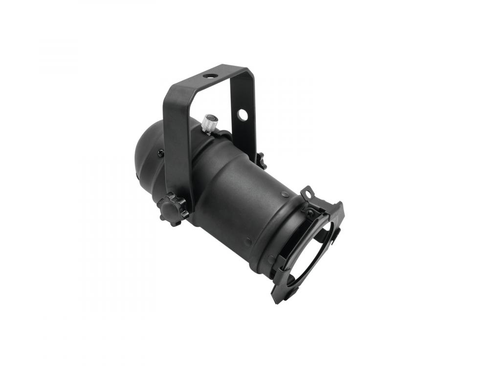 PAR-16 housing with GX-5.3 socket for 12 V MR-16 lamp -Mini spots for 50 mm cool beam lamps -Detailed original reconstruction of the big stage spots -Ideal for decoration purposes -Delivery includes color filter frame, mounting bracket, socket GX-5.3 -Maximum voltage 12 V -Max. power consumption 50 W -Total length 15 cm -Case color: Black -Color generation: Via color filterframe (opt) -Power connection: Fix Main input cable with open wires -Control: without |