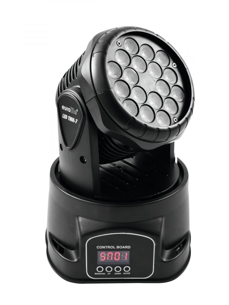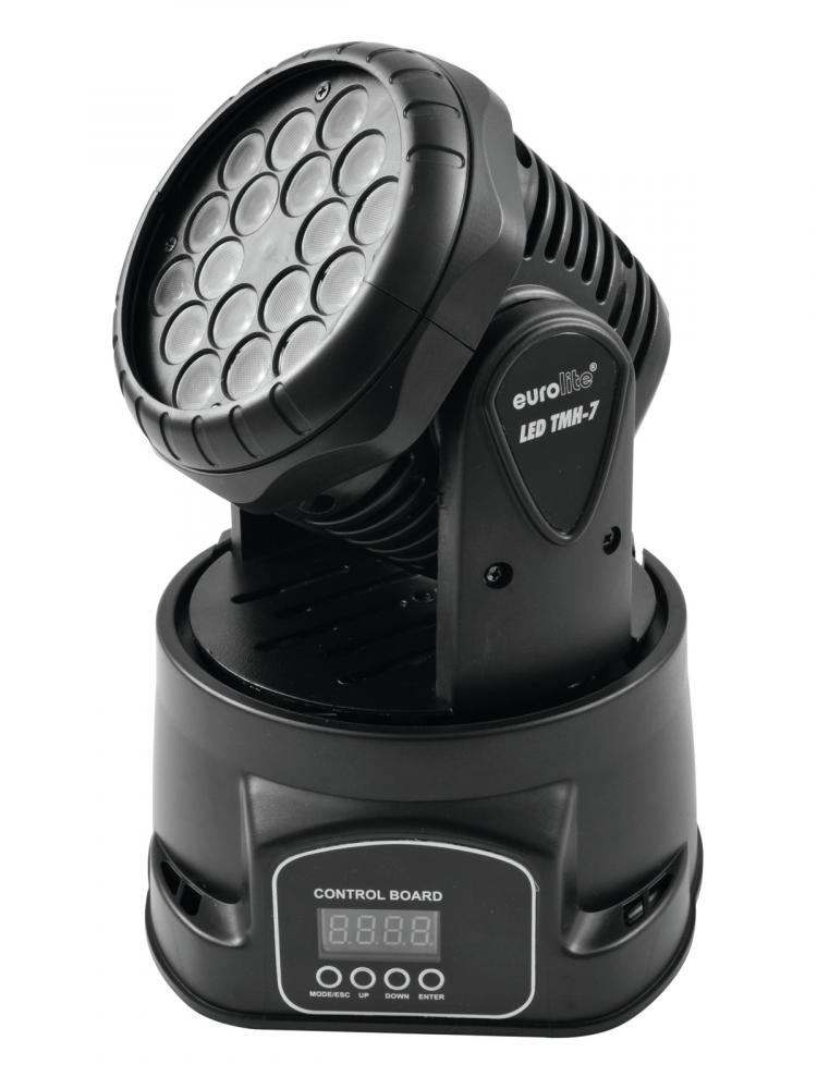Power supply: 230 V AC, 50 Hz DMX channels: 11 DMX connection: 3-pin XLR Sound-control: via built-in microphone Flash-rate: 18 Hz LED number: 18 LED type: 3 W RGB (3in1) Beam angle: 25° Maximum PAN-movement: 540° Maximum TILT-movement: 180° Dimensions (L x W x H): 175 x 175 x 245 mm Ecodesign regulation: Yes Special product: Not designed for household room illumination Purpose: Show effect lighting DMX channels: 11 Power consumption: 75 W Flash rate: 1 - 18 Hz Max. TILT movement: Exact positioning (16 bit resolution) 180° Max. PAN movement: Exact positioning (16 bit resolution) 540° Weight: 3 kg Lamp type: LED lamp Cooling fan: Yes IP classification: IP20 Beam angle: 25° Height: 24,5 cm Depth: 17,5 cm Width: 17,5 cm Power connection: Mains Input Socket (M) IEC connector (M) mounting version Power supply cord with safety plug (M) LED: 18 x high-power 3 W 3in1 TCL RGB (homogenous color mix) Power supply: 230 V AC, 50 Hz |