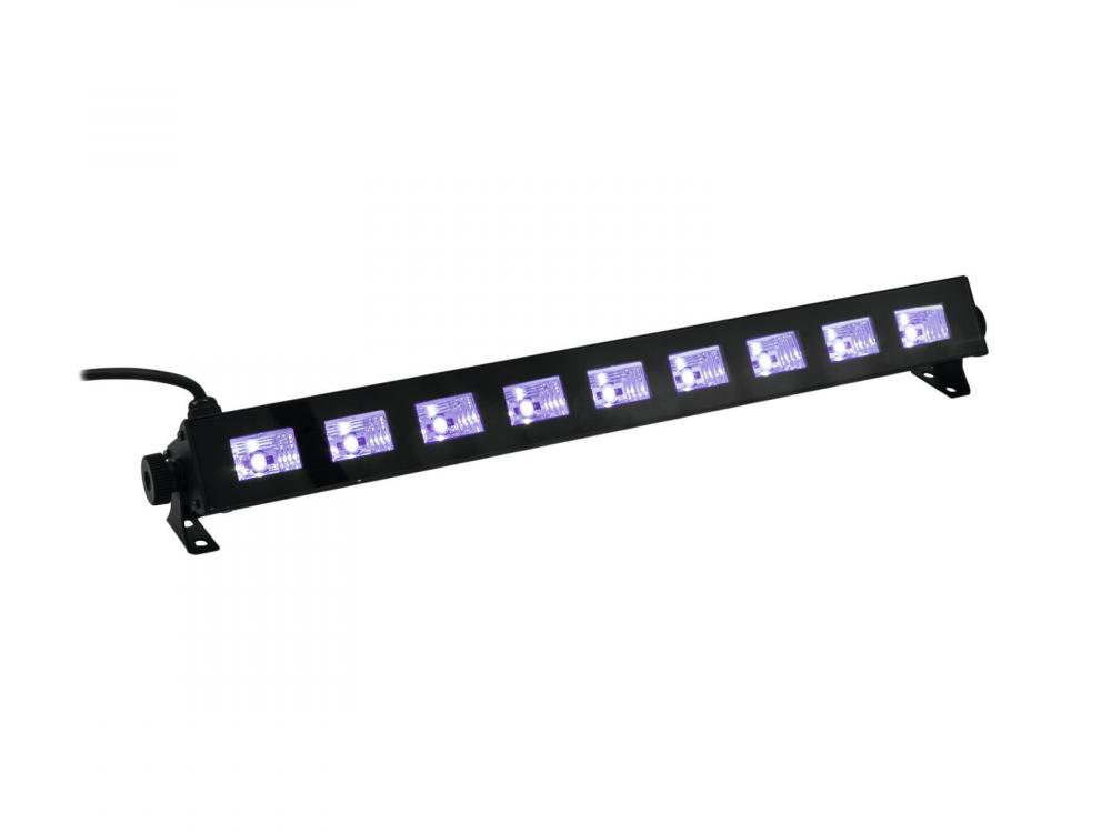 Simple UV lighting bar with 9 x 1 W UV LED -Perfect for decorative and illumination purposes in party rooms, etc. -For permanent installation -Locking possibility at the mounting brackets -Slender housing -Available in two sizes -Switch-mode power supply for operation between 100 and 240 volts -Ready for connection via power cord with safety power plug -ON/OFF switch on the power cable -Case color: Black -Effect: UV -Power connection: Fix Power supply cord with safety plug (M) -Control: without -LED: 9 x SMD 1 W UV (homogenous color mix) |