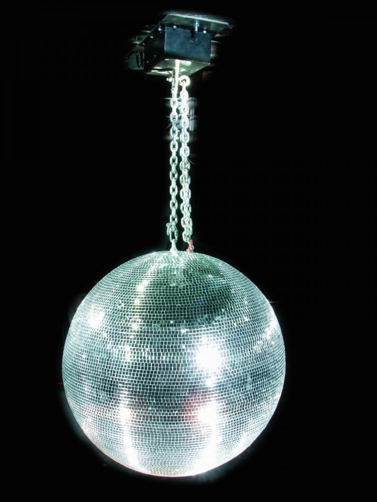 Safety mirror ball with second eyelet -Mirror ball with a stable fiberglass core -High stability due to integrated axle -Exact alignment -Genuine glass mirror facets -Installation eyelet -Additional safety eyelet for safety chain -Delivery without motor |