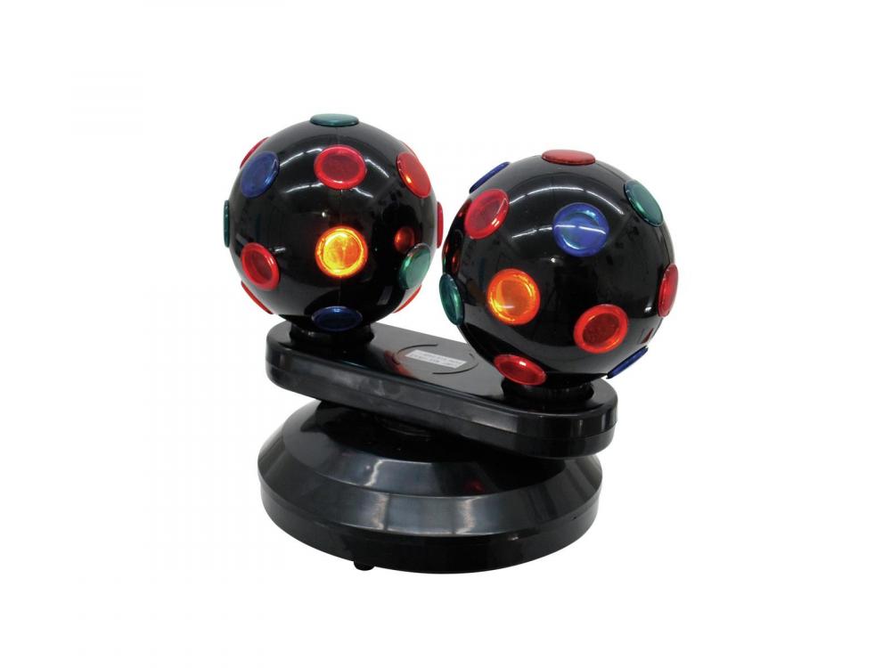 Simple light effect with double rotation for two E14 230V/15W lamps -Two beam-balls rotate around their own axis plus around the effect's main axis -2 x 19 beams in 4 colors are thrown whirlwind-like through the room -Brilliant, intensive colors -Standing installation -High-quality motor -When smoke is used, this effect becomes especially attractive -Easy installation -Ready for connection with power cord and Euro-plug -Delivered in a four-color carton -Ideal for mobile operation, party-rooms and small discotheques -For two inexpensive 230V/15W E14 lamps -Effect: Multi beam effect -Power connection: Fix Power supply cord with Euro plug (M) -Control: Stand-alone |