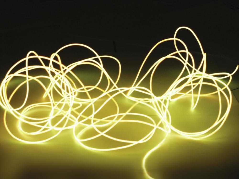 Flexible electroluminescent lighting wire, battery operation -With the included controller, extraordinary artwort can be generated by using flashing or static effect modes -Countless possibilities for use: window dressing, party-room decoration, on fairs for product presentation, advertisement, vehicle decoration, safety signs, toys, arts & crafts, sport items, on clothing, electrical appliances -Available in different colors, 2 lengths and 3 various diameters -360° illumination -No heat radiation -Very low power consumption -Flexible, bendable, knotable -Easy to mount: with glue, tape, clip, or thread -Ready for use with supplied batteries -Battery: 2 x Primary battery 1.5V AA Mignon LR06 alkaline manganese (provided) -Color generation: Y yellow -Power connection: Battery/battery pack -Control: Stand-alone |