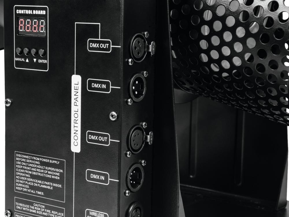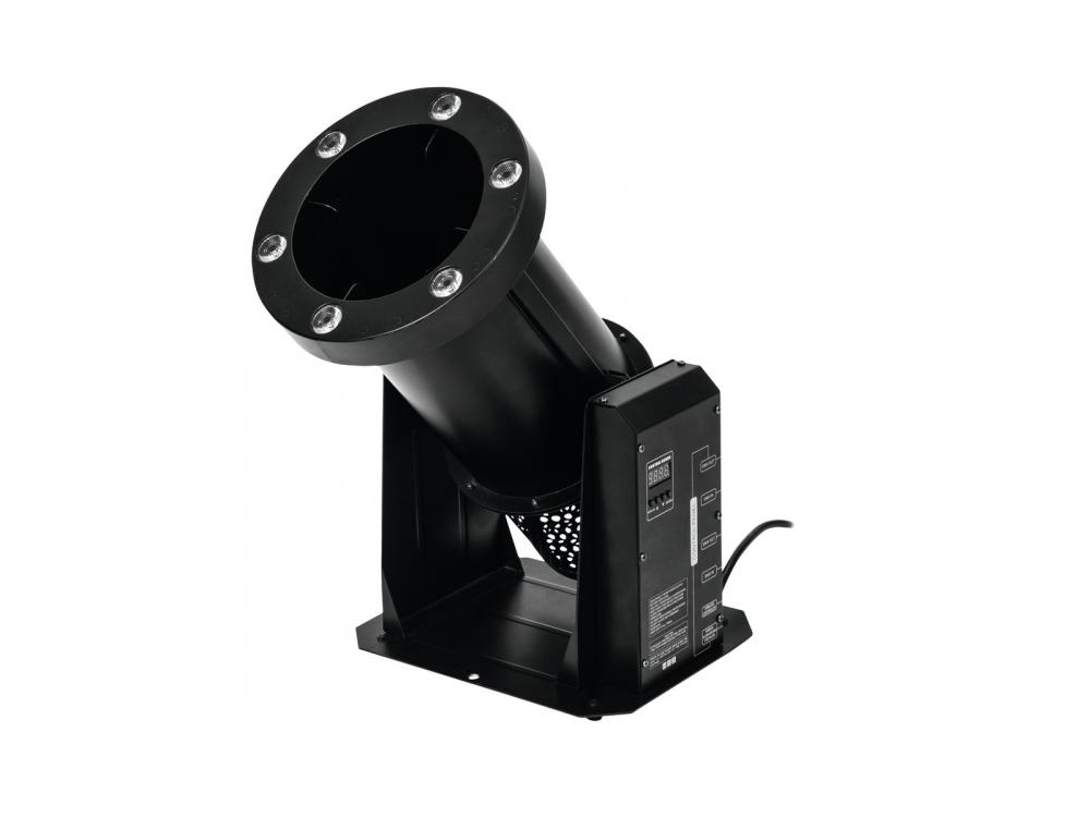 DMX confetti machine with LED illumination and wireless controller -Easy-to-use DMX confetti machine with wireless controller -Output nozzle with RGBA LED illumination for impressive effect presentations -Variable output angle -Output height (90°) up to 5 meters -Output distance (45°) up to 5.5 meters -Control via supplied wireless controller or integrated DMX512 interface -Matching confetti with metallic colors available as accessory -6 high-power 8 W LEDs for rich RGBA colors -LED color, color change, brightness and strobe effect selectable -Control panel with LED display and four operating buttons -Rugged metal housing for truss installation -Case color: Black -Use: Machine -Power connection: Fix Power supply cord with safety plug (M) -Control: Wireless remote control (provided); Stand-alone; DMX -LED: 6 x high-power 8 W 4in1 QCL RGBA (homogenous color mix) |