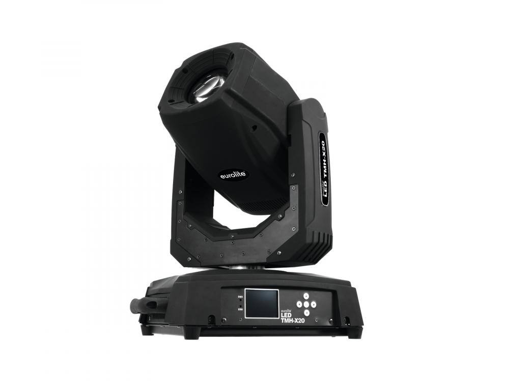 Bright spot with 200 W LED, zoom, gobo wheels, color wheel, 2 prisms -Equipped with a white 200 W COB LED -Color wheel with 7 dichroic color filters and white -Switchable color change (mode 1: only full colors, mode 2: color-change at every position) -Rainbow effect with adjustable speed in both directions -Gobo-wheel 1 with 9 static gobos and open -Gobo-wheel 2 with 7 rotating gobos and open -All rotating gobos can be interchanged -Slot-in gobo system for exchanging gobos without tools -Gobo shake function -Effect wheel with rotating 6 fold linear prism and 3-facet prism -The prism rotate in both directions and at different speeds -Exact positioning via 16 bit PAN/TILT movement resolution -Positioning within 540° PAN and 270° TILT -Strobe effect with 1-18 flashes per second -Strobe effect with adjustable speed -Random strobe effect -Motorized zoom (12°-23°) -Motorized focus -Iris -Dimmer -DMX-controlled operation or stand-alone operation with Master/Slave function -Sound control; microphone sensitivity adjustable via control board -Internal programs -Automatic position correction -Fan-cooled -Control board with touch LCD and foil-keyboard for adjusting the DMX-starting address, PAN/TILT-Reverse, Program, Reset -Switch-mode power supply for operation between 100 and 240 volts -Power connection via P-Con jack and included power cable with safety plug -Feed-through output allows to power up to 8 devices -DMX control via every standard DMX controller -Case color: Black -Effect: Gobo effect; Single Beam -Projection: flicker-free -Power out: 1 x P-Con (Power out) gray, mounting version -Power connection: Mains Input Socket (M) P-Con (Power-In) Power supply cord with safety plug (M) (provided) -Control: Stand-alone; DMX -LED: 1 x high-power 200 W Color wheel |